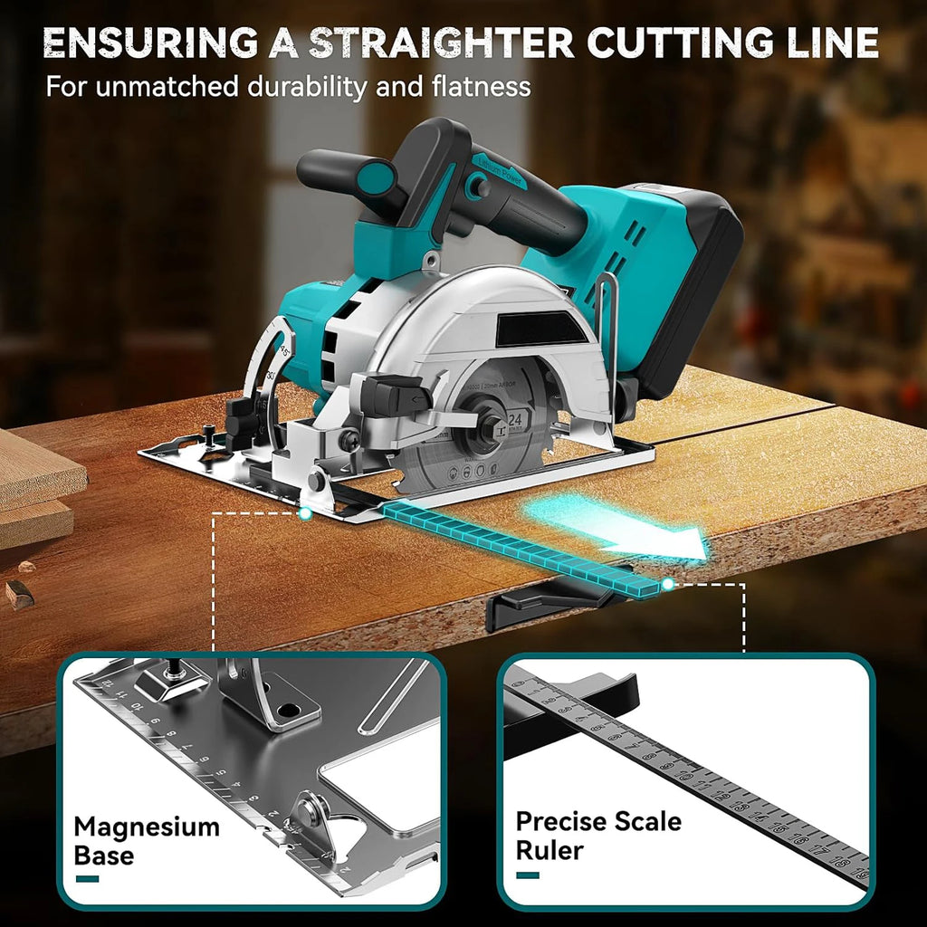 【 Unparalleled Brushless Power 】 Equipped with a high-power 1500W brushless motor and a fast 10800r/min, this circular saw is a paragon of efficiency. Its efficient cooling system ensures that it can quickly handle a series of cutting tasks, whether for home decoration or professional projects.