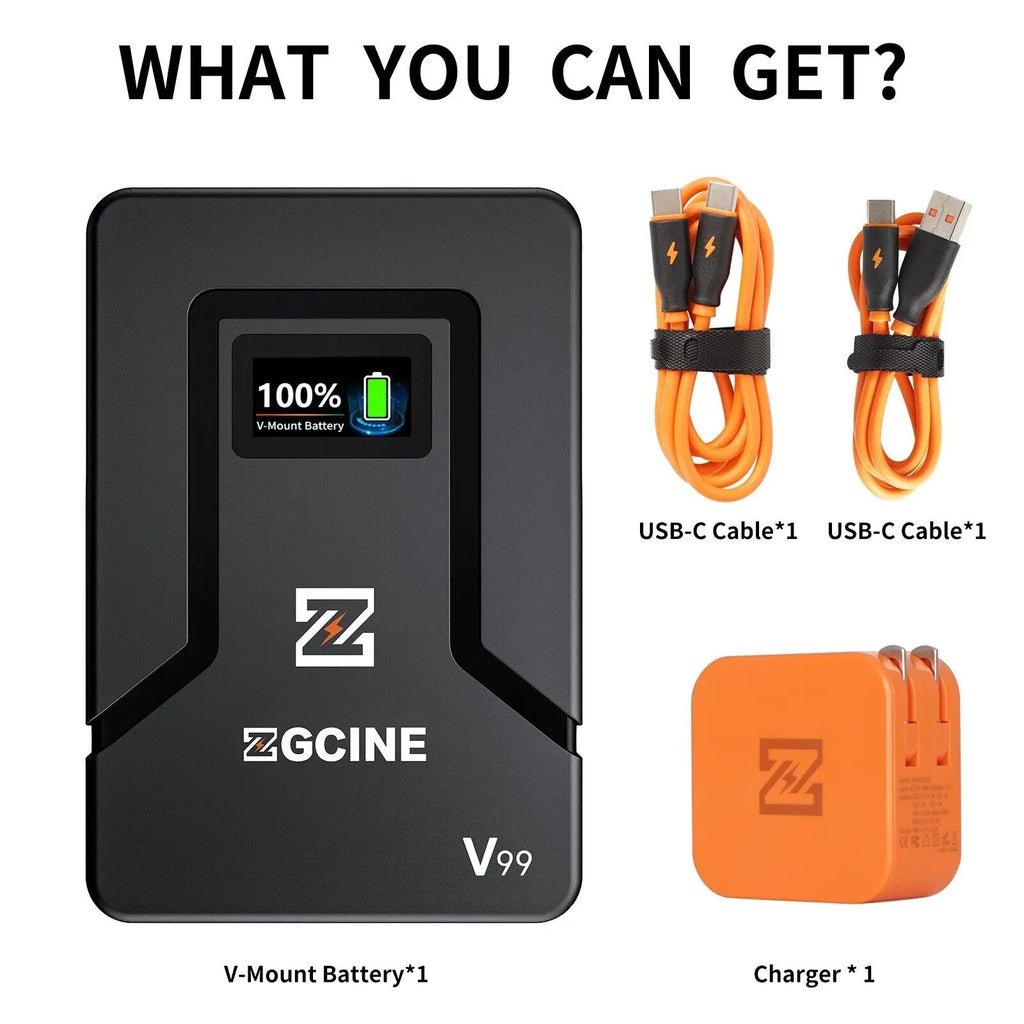 ZGCINE ZG-V99Pro V-Mount Battery Upgraded with PD100W faster charging speed, more ports and real-time smart display function