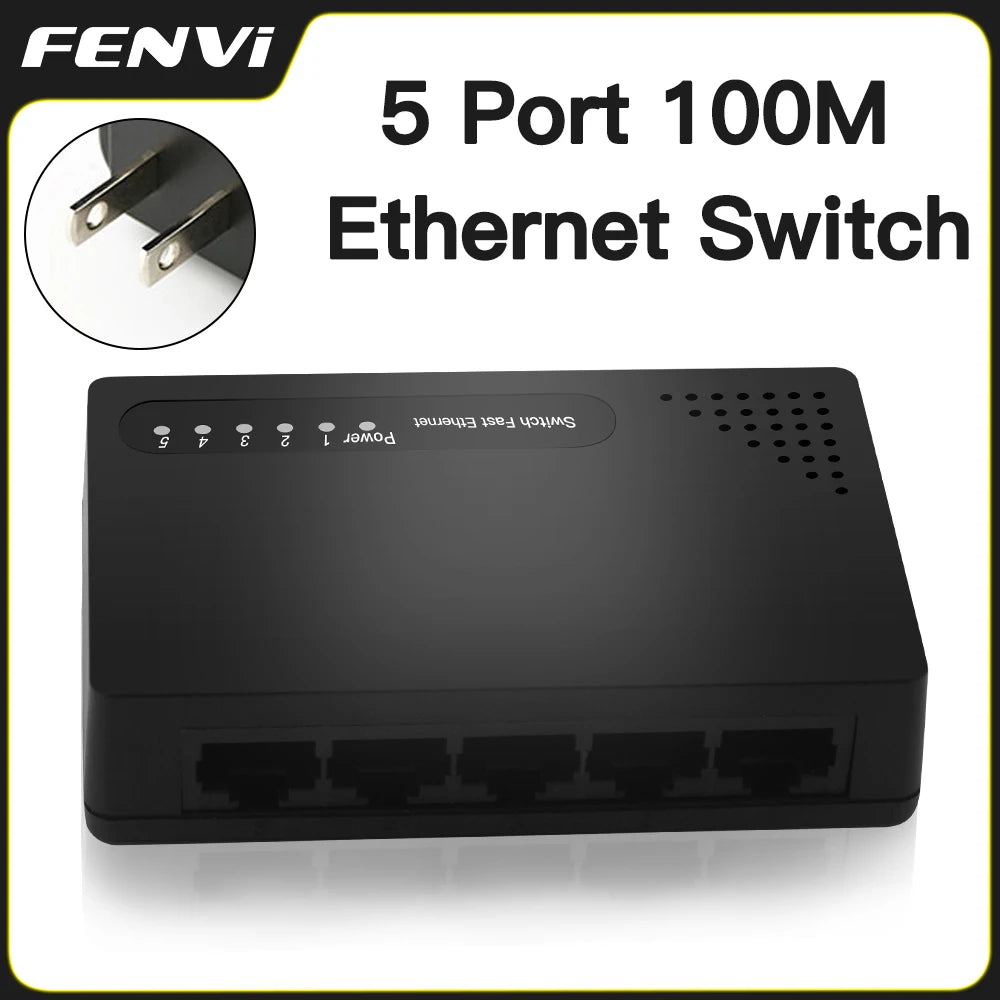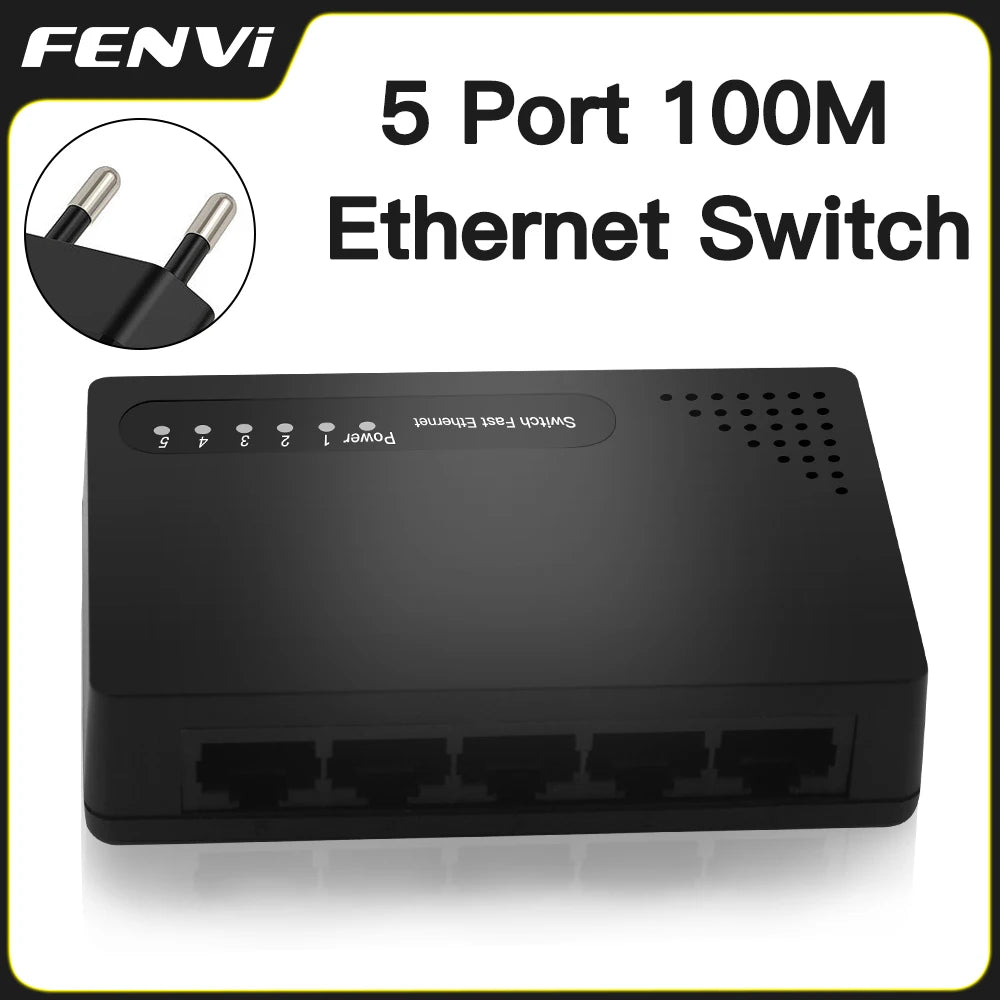 FENVI 5 Ports 100mbps Network Switch Fast Ethernet LAN RJ45 Hub Splitter Plug and Play EU US Power Supply Support Network Switch