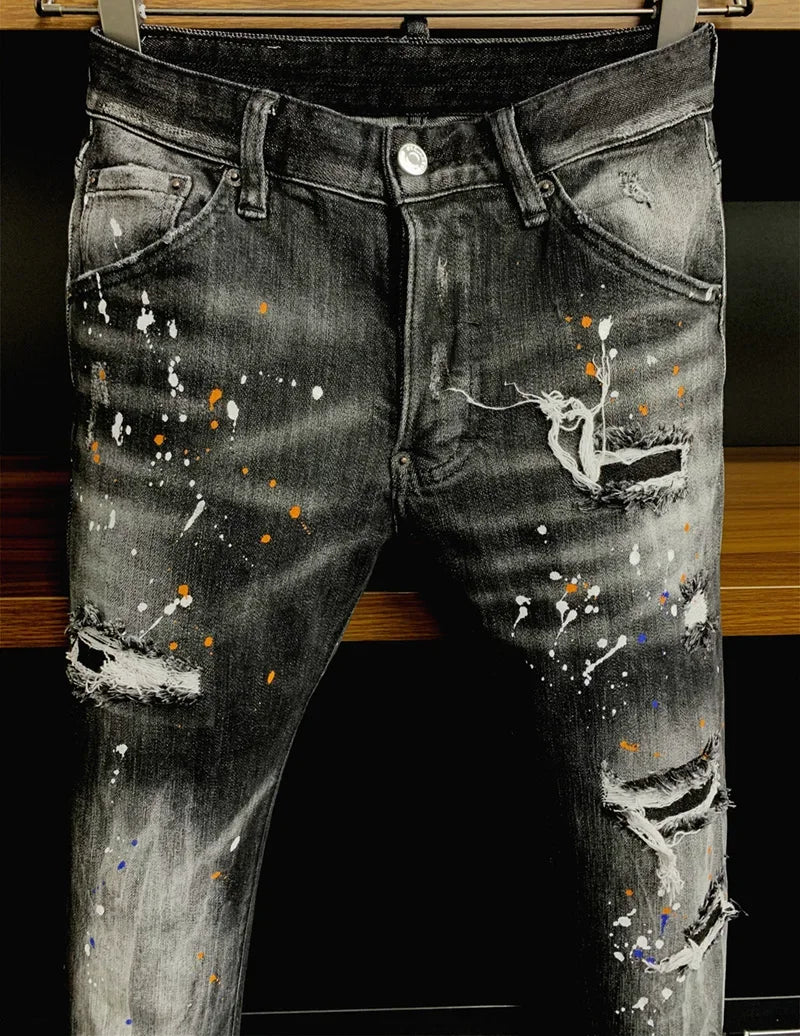 ICON BRAND dsq2 Men Jeans Denim Pants Hole Slim Pencil Trousers Metal Buttons Party Classics Fashionable Black D2 jeans