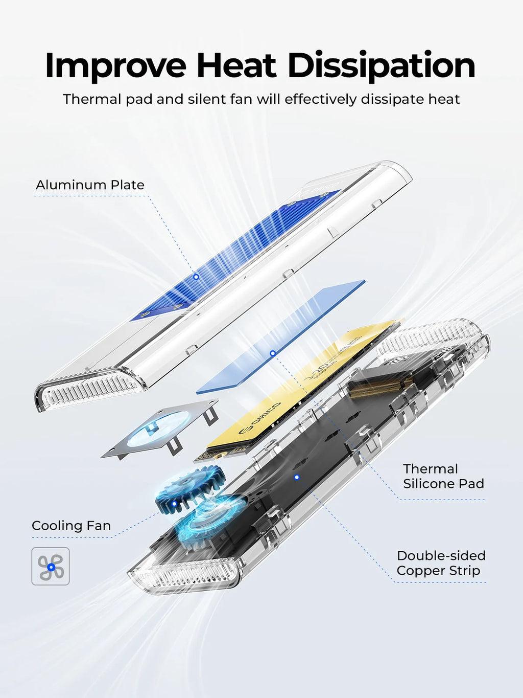 ORICO 20Gbps M.2 NVME SSD Case Enclosure with Cooling Fan USB 3.2 Gen 2 x 2 PCIE NVME Adapter Tool Free 4TB for PCIe M Key