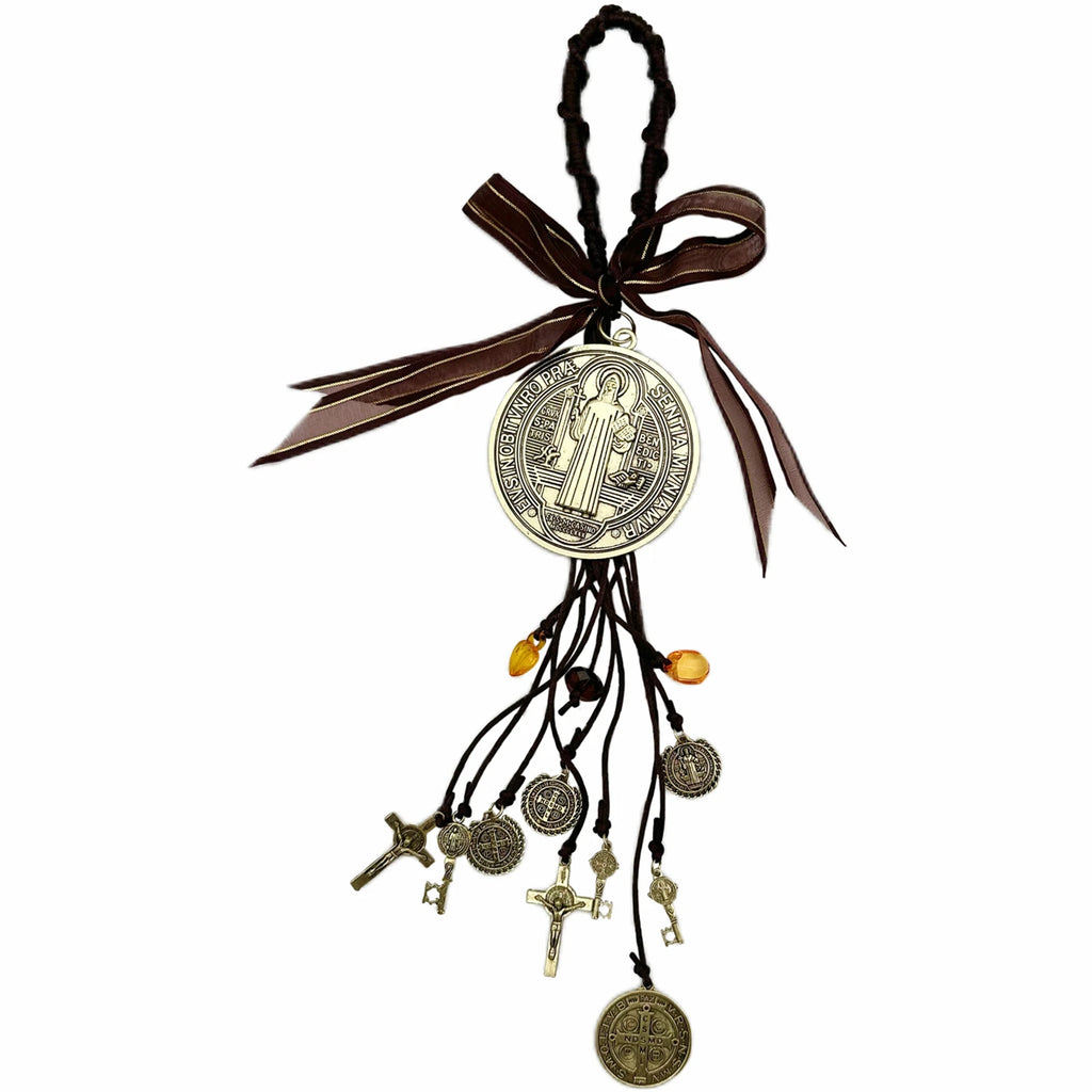 Saint Benedict Medal Protection Blessing Charm Pink Enamel Double Side Catholic San Benito Medalla Cross Charm Handmade Easter Day's Gift Car Hanging Charm for Men Women