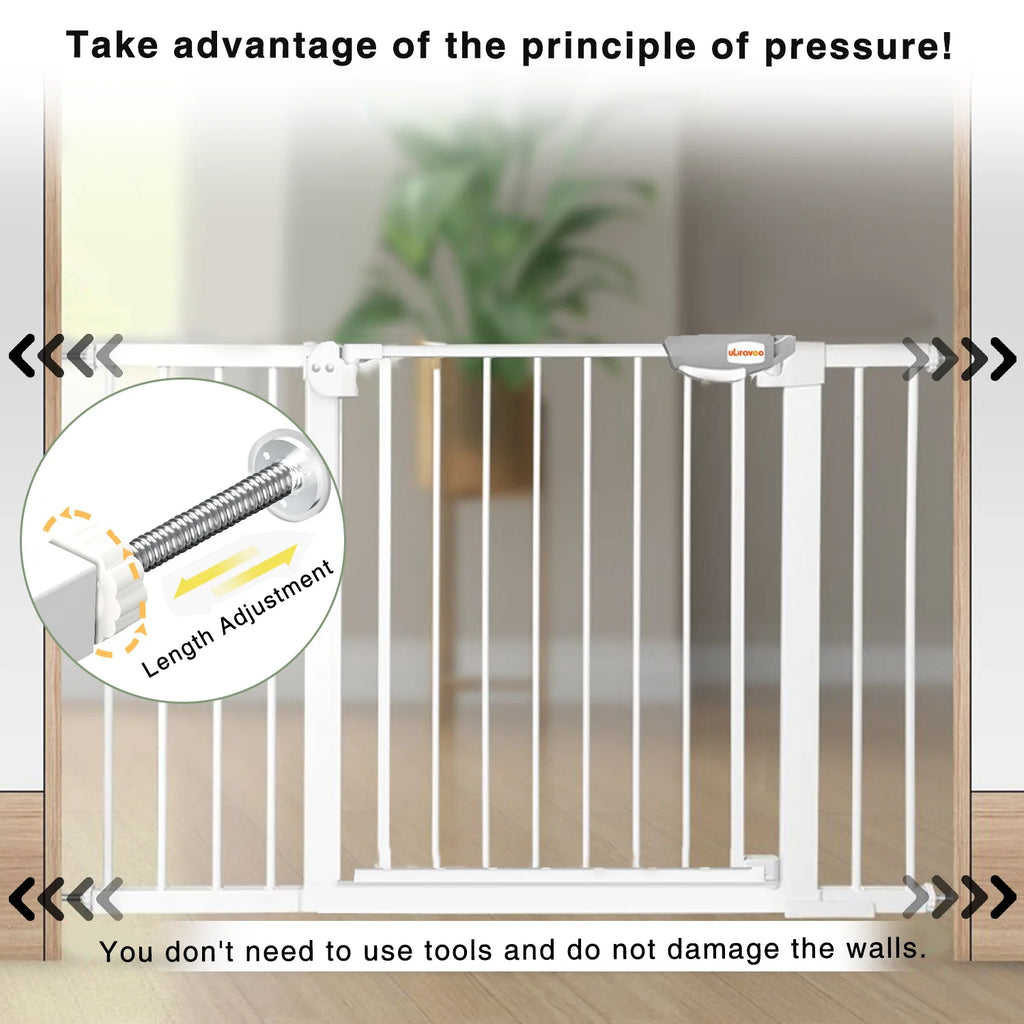 UBRAVOO Easy to Install Pressure Mounted Metal Grille for Babies/Pets, No Drilling, No Tools Required, with Wall Protector and Extensions