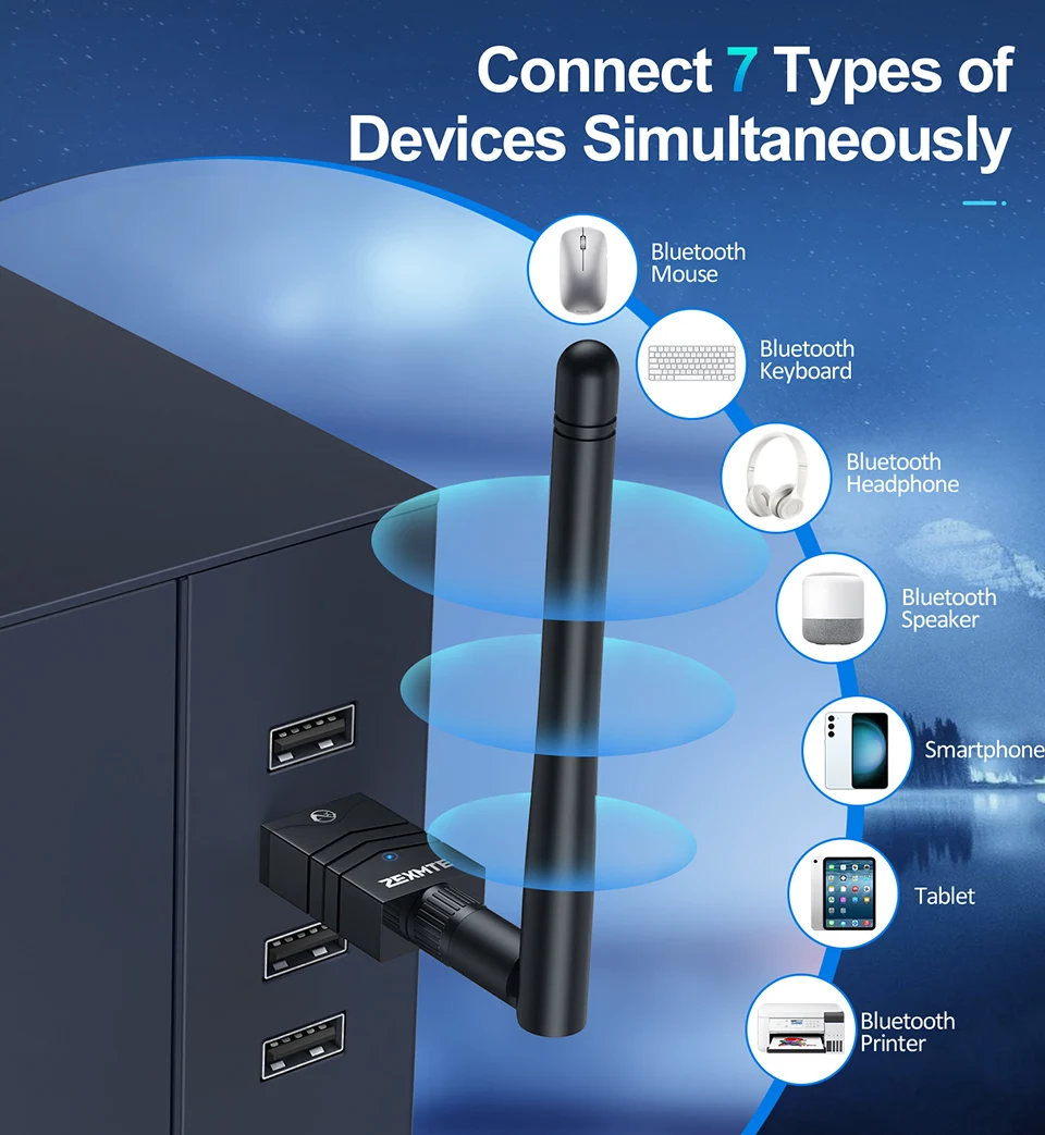 Can work with up to 7 devices at the same time.