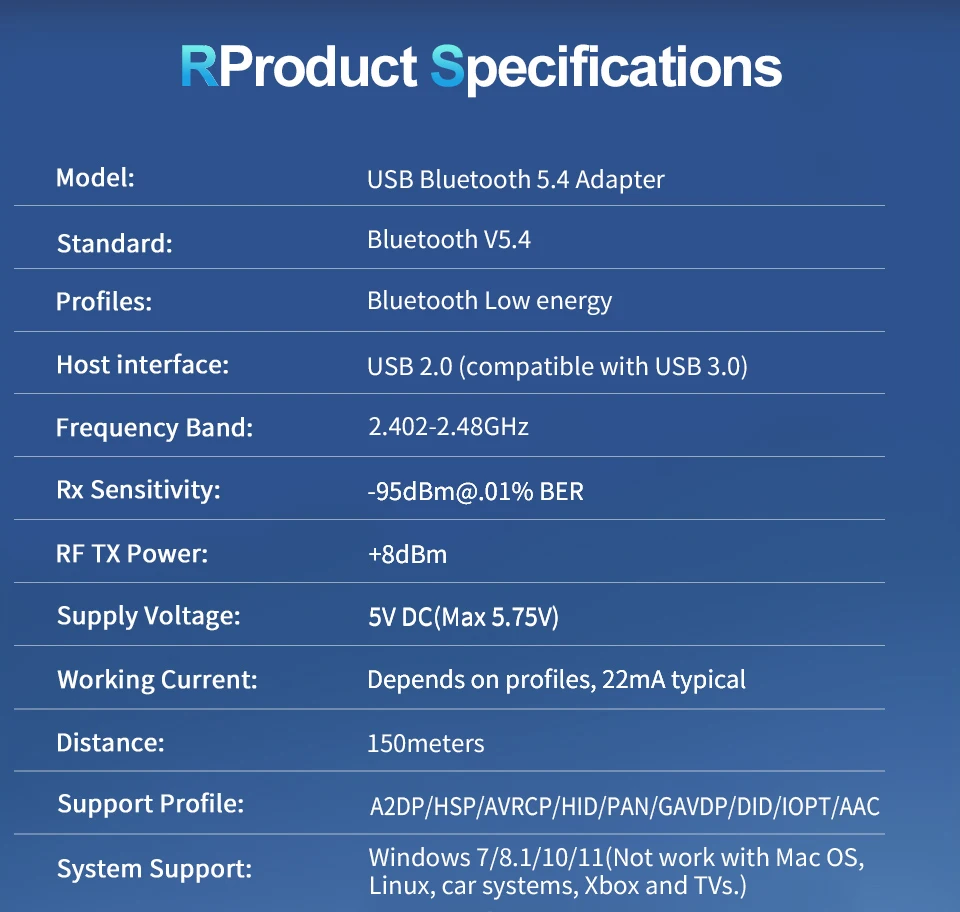 Model Number: Long Range USB Bluetooth Adapter