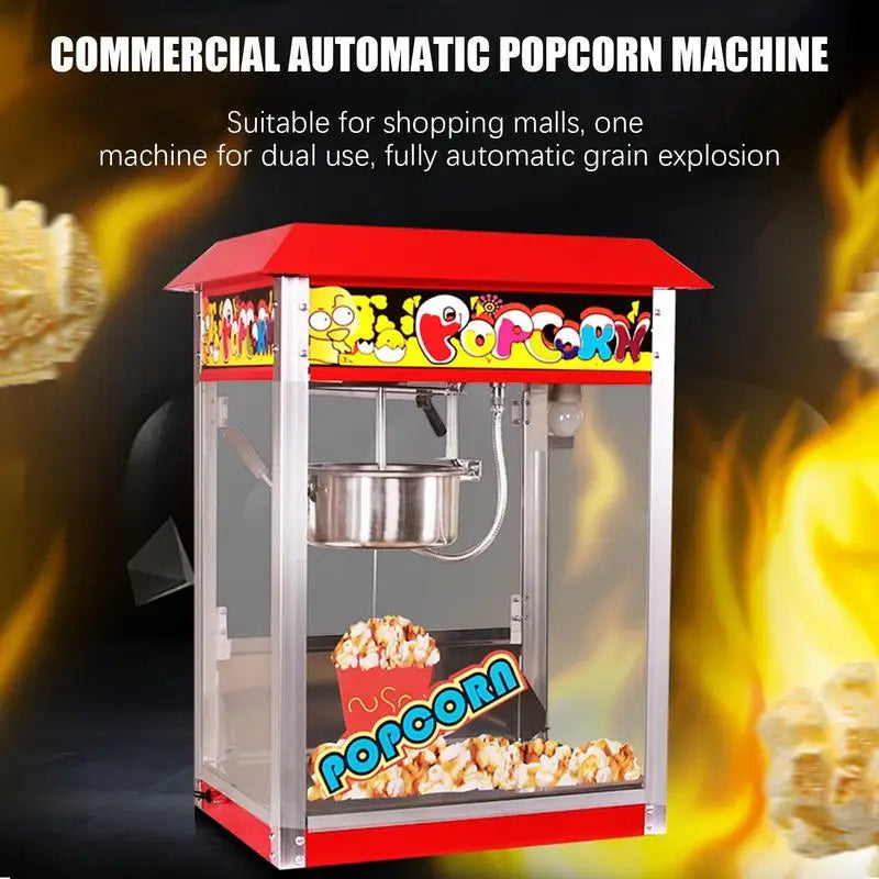 Commercial Popcorn Maker Stainless Steel Electric Popcorn Machine Automatic 1400W Non-Stick Coating Fast Heating Machine
