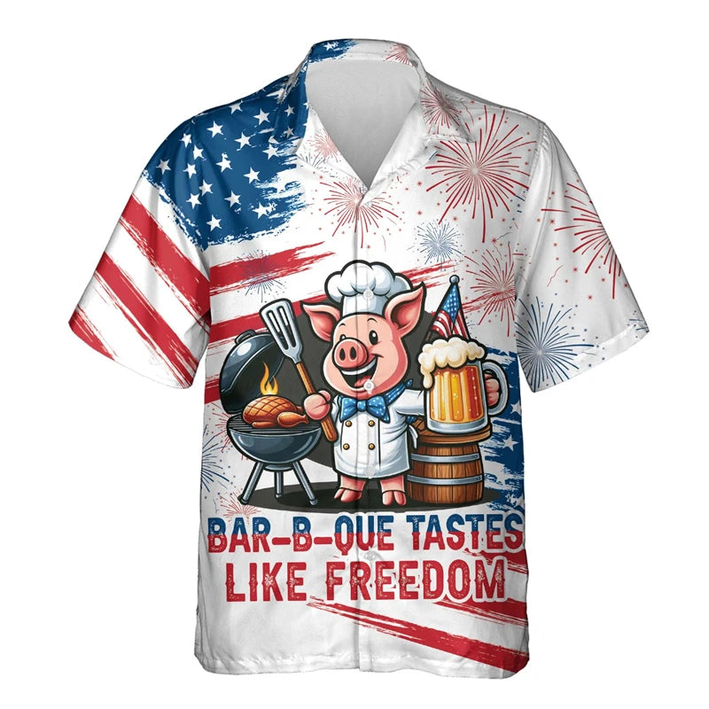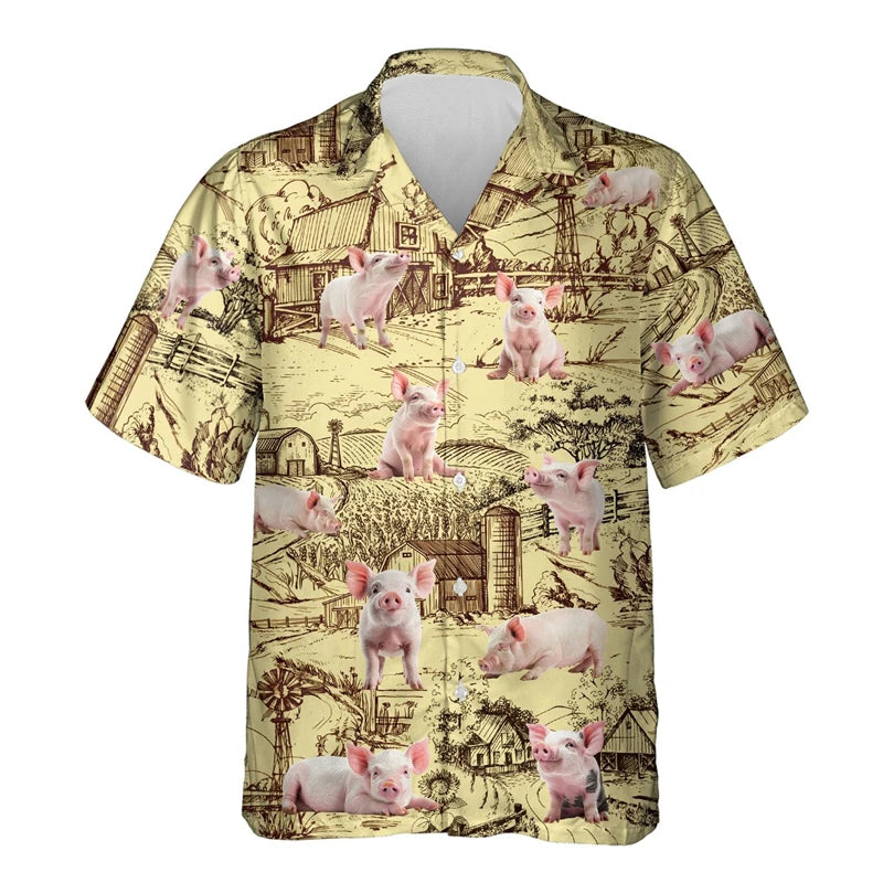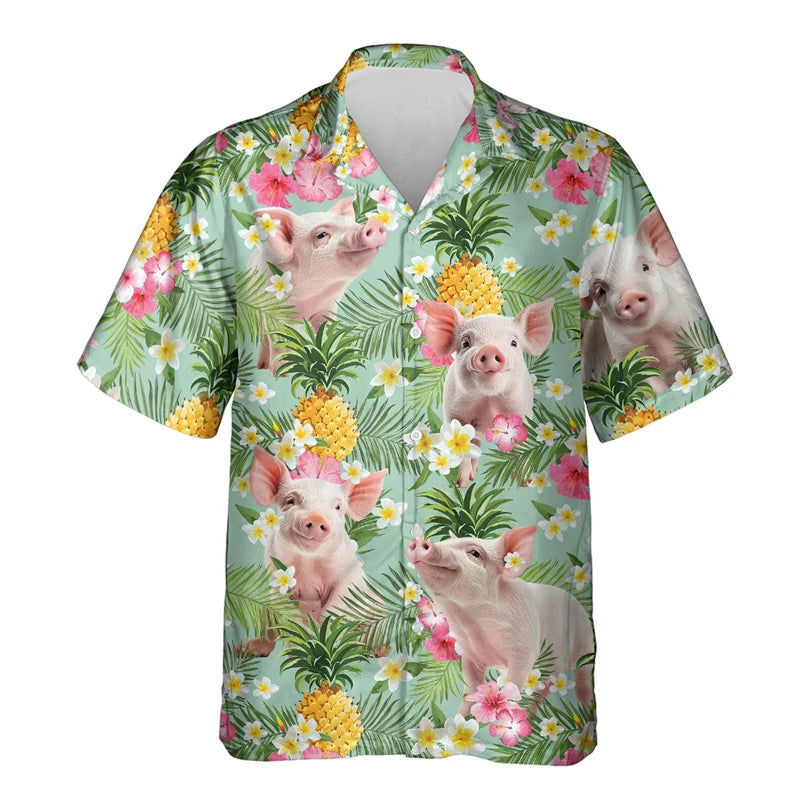 Funny Men's Shirt Animal Pig 3D Printed Beach Cute Pet Graphic Shirts For Men Clothes Casual Hawaiian Surfing Short Sleeve
