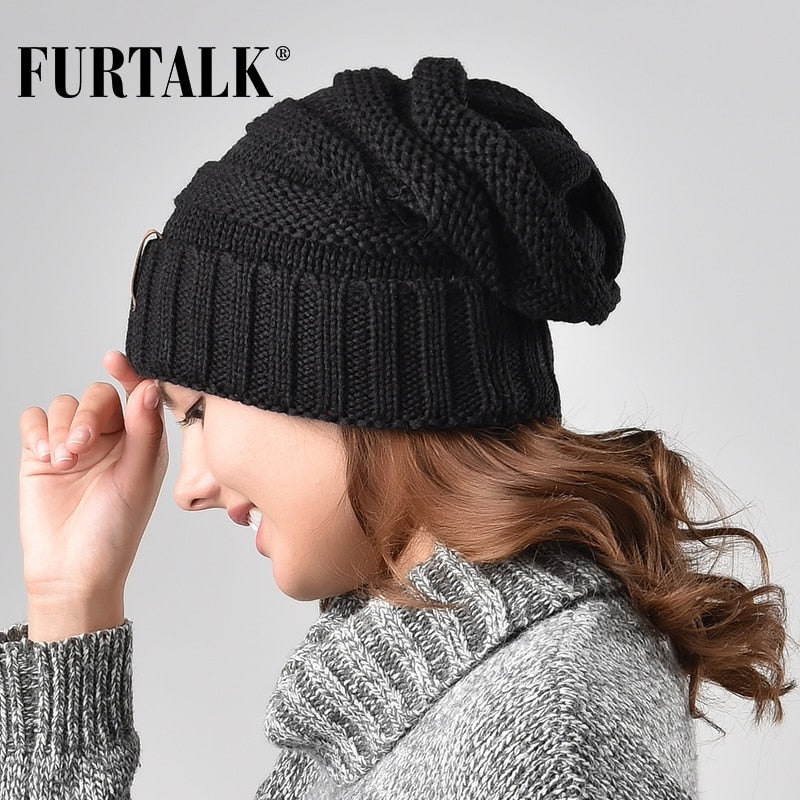 FURTALK Winter Knitted Hat Women Hat Slouchy Beanie for Girls Skullies Cap A047