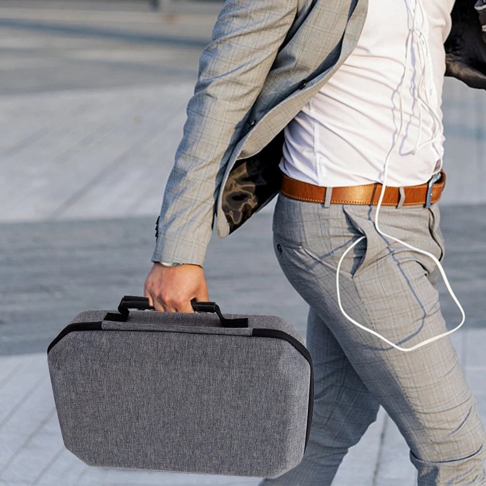 4. Organized Storage: The interior of protective bag features thickened grooves and a storage mesh pocket, keeping the VR headset and controllers separate to prevent rubbing. An additional zippered mesh pocket is provided for storing small accessories like charging cables, keeping everything neat and organized.