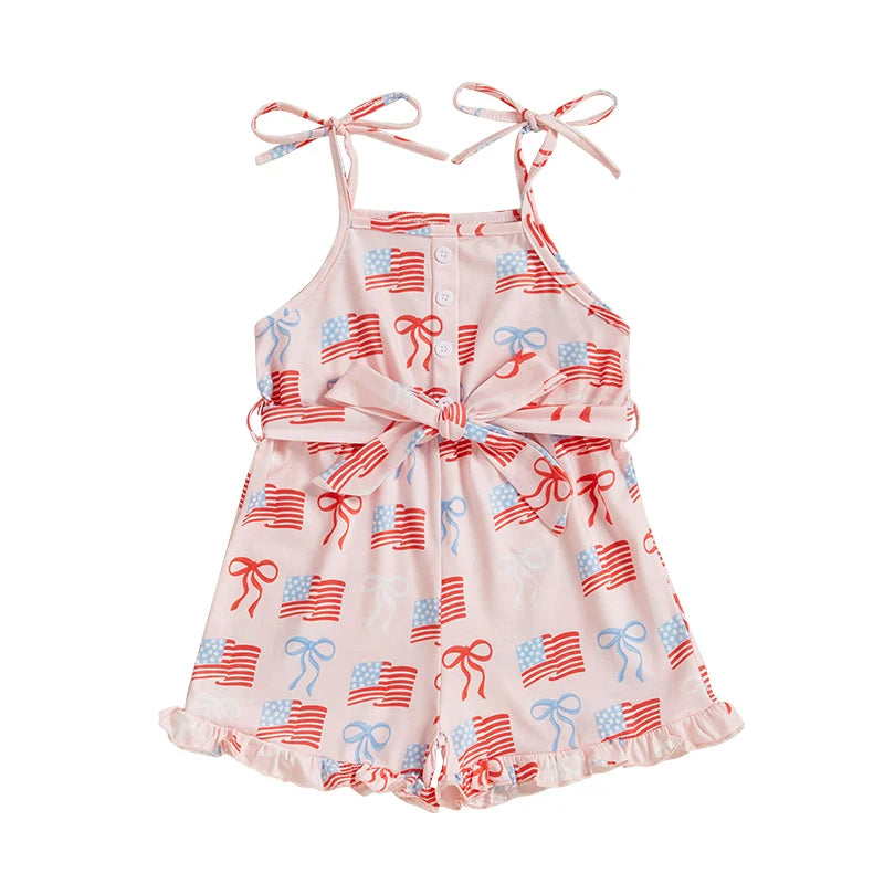 Independence Day Baby Girl Outfit Red White Blue American Flag Romper with Bow Belt 4th of July Sleeveless Jumpsuit Set for