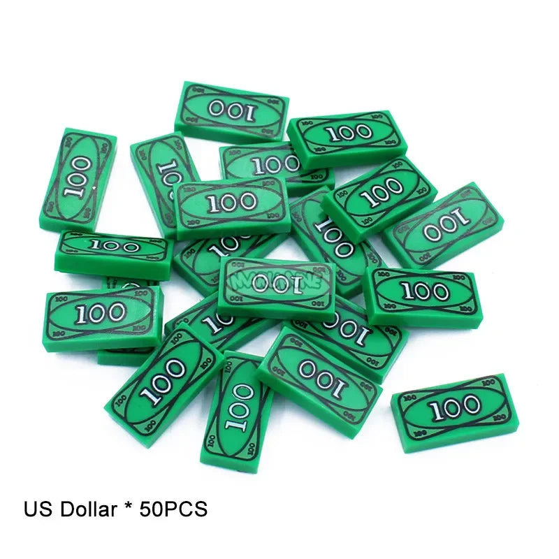 Marumine 50PCS Tile Special 1x2 Ingot Bar Gold Money Pirate MOC Brick Part 99563 Assembles Particles Building Blocks Accessories