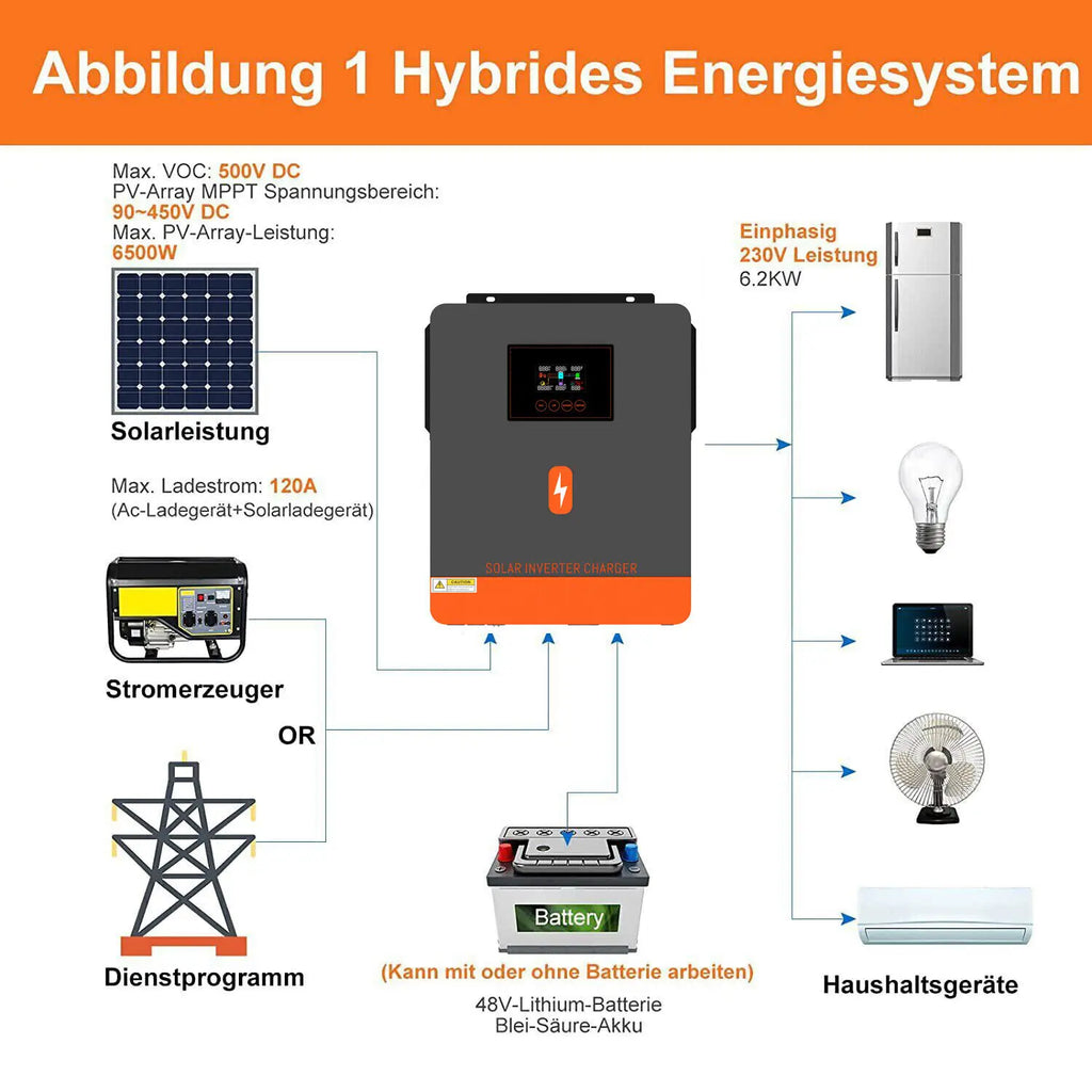 PowMr 6.2KW 4.2KW 3KW 2KW Hybrid Solar Inverter with WIFI MPPT 120A 50HZ Charge 12V/24V/48V LiFePo4 Battery 230V PV Output 500V