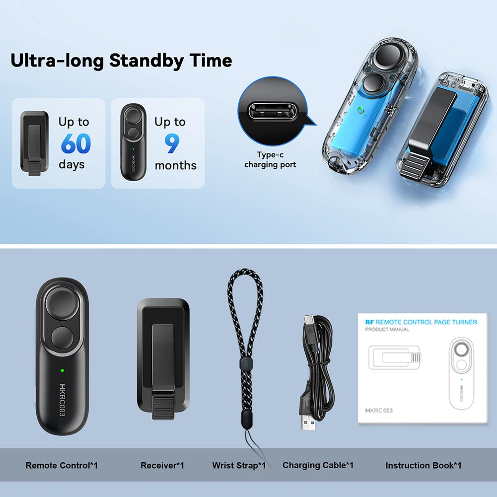 Feature: 1. Easy to Use : The remote page turner comes pre-paired with the receiver. Simply clip the receiver to the correct screen position, press the button on the receiver, and use the remote control page turner to flip pages effortlessly. Remember to remove the receiver after use to extend its lifespan. 2. Wide Compatibility: This page turner clicker uses wireless remote technology for hands-free reading. Compatible with Kindle, Compatible with Kindle10/11, Compatible with KindleScribe, Compatible with Kindle Paperwhite (KPW, KPW2-5), Compatible with KindleOasis (KO2/3), Compatible with iPad, Compatible with iPhone, for Android, tablets, Compatible with Surface, and Compatible with Kobo. Note: Not compatible with older Compatible with Kindles, Compatible with Kindle7/8, or Compatible with KindleFire HD 10 (10th/11th edition). 3. Quiet Reading Experience: Enjoy a noise-free reading session with silent buttons, perfect for nighttime use without disturbing others. The phone camera video record remote triggers ensure a peaceful environment for immersive reading. 4. Hands-Free Convenience: Free your hands with the camera camcorder remote controls. Whether taking notes or wrapped in a cozy blanket, you can turn pages without touching the screen, enhancing your reading experience with comfort and ease. 5. Wireless Remote Control: Use the camera camcorder remote controls for smartphone camera shutters and video recording. Capture photos, selfies, or videos remotely, eliminating the awkwardness of taking outdoor shots alone. Perfect for both solo and group photos. Specification: Origin: Mainland China Color: purple, white, pink (optional) Transmitter battery capacity: 150mAh Receiver: 300mAh Transmitter size: 86*29*23mm/3.39x1.14x0.91inch Receiver size: 65*30*23mm Packaging size: 146*95*32mm Gross weight: 106g Note: