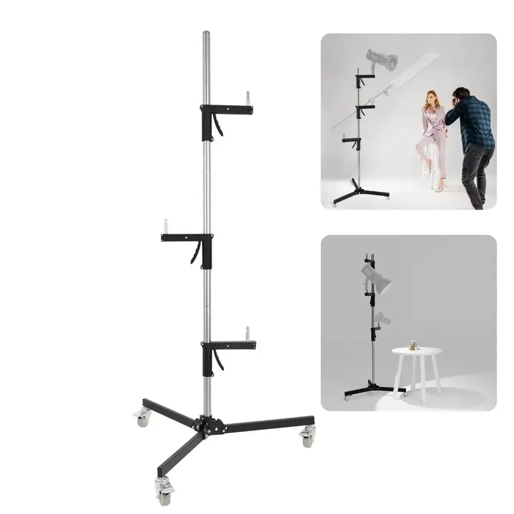 SH 63cm-190cm Gun Grip Light Stand 1/4 and 3/8 Screw With Wheels Folding Tripod For Studio Flash LED Light Softbox COB Light