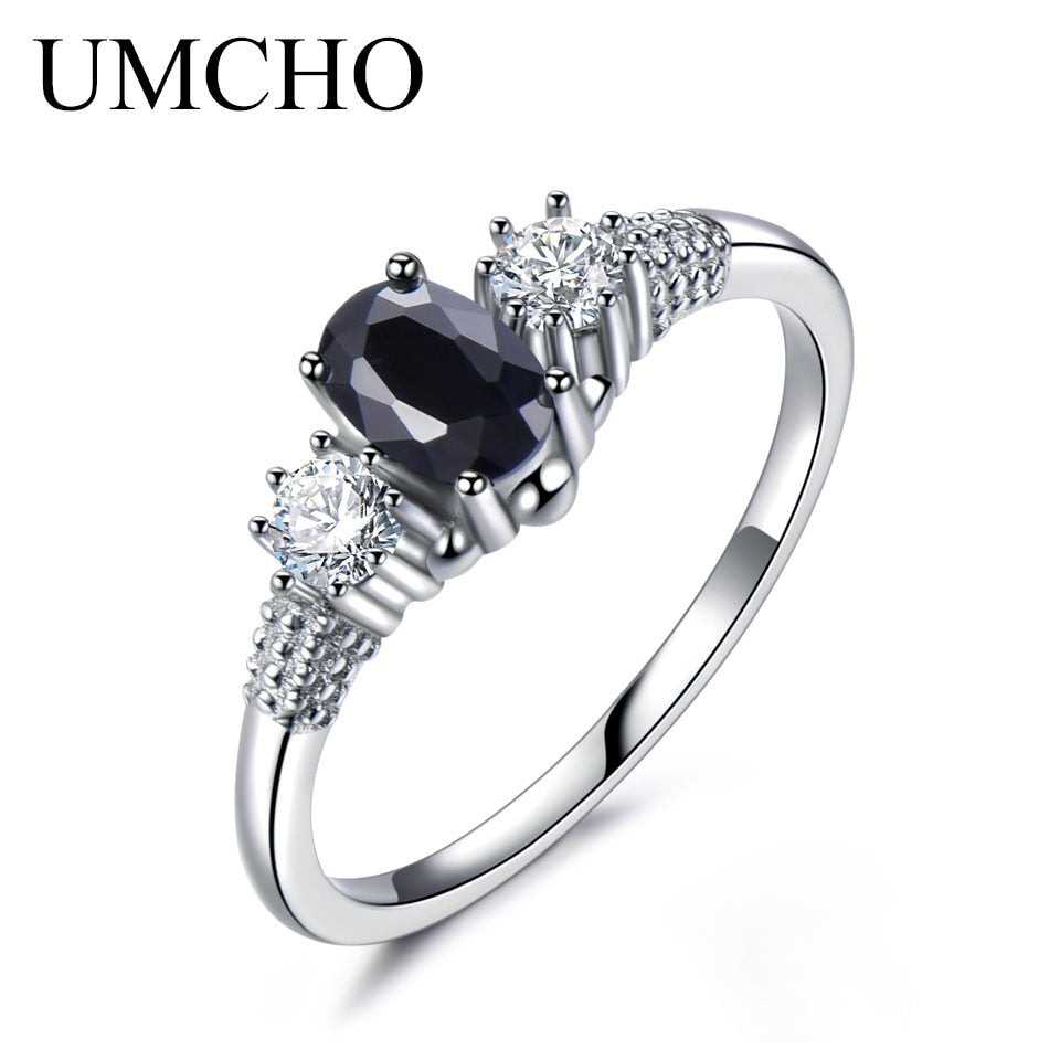 UMCHO Luxury Natural Black Spinel Princess Diana Rings Genuine 925 Sterling Silver Engagement Rings For Women Wedding Jewelry