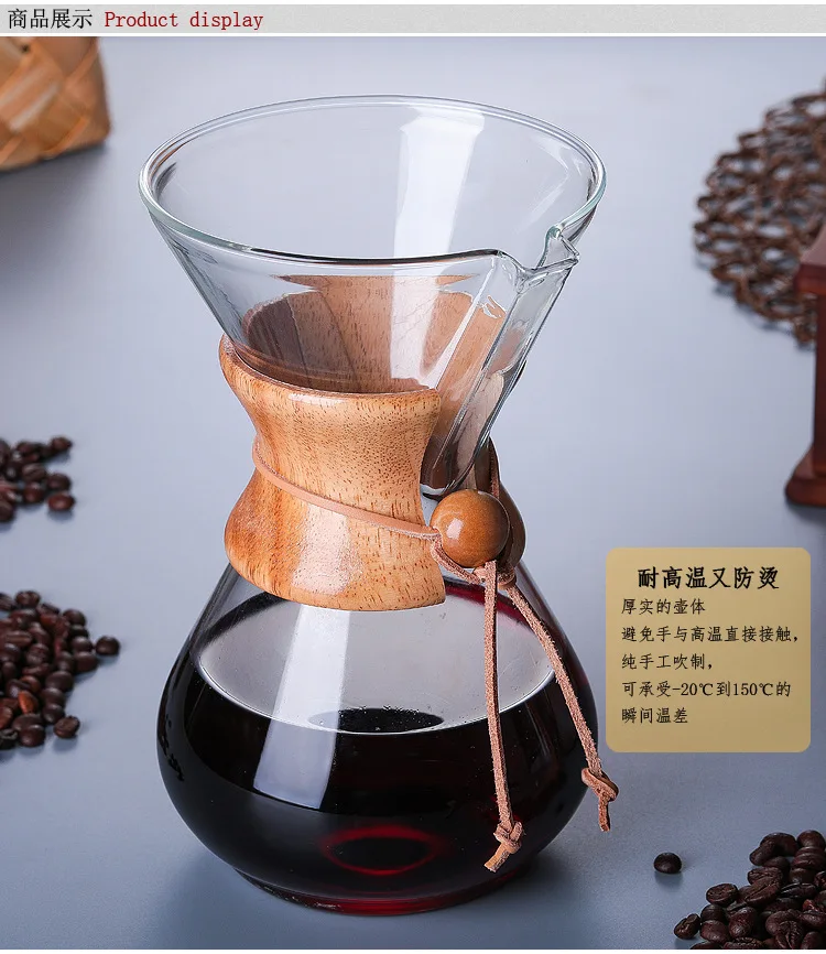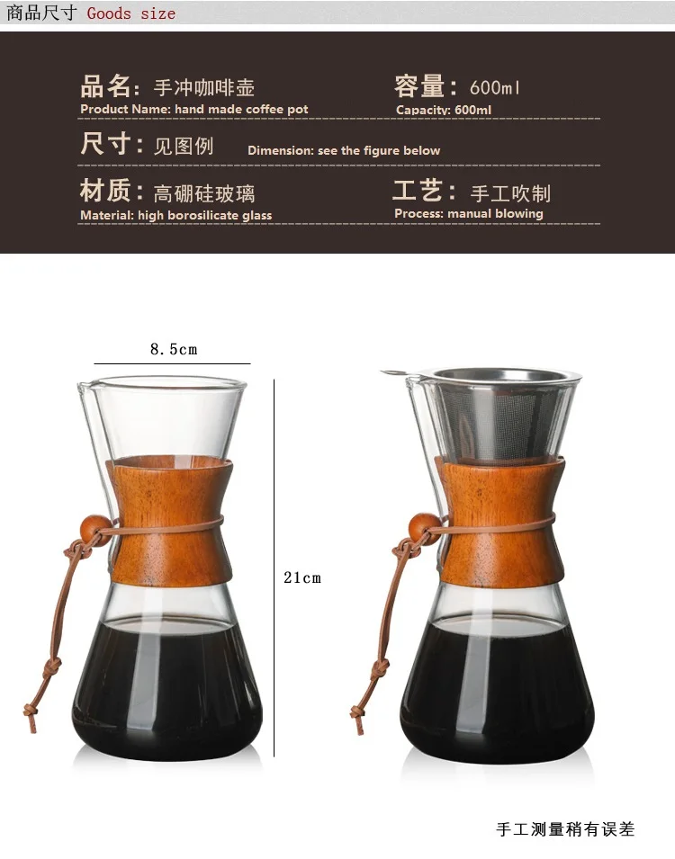 1PC 1000ml Glass Coffee Pot Dripper Moka Tea Maker Percolator Barista Tools Espresso Manual Kettle Teapot With Stainless Steel