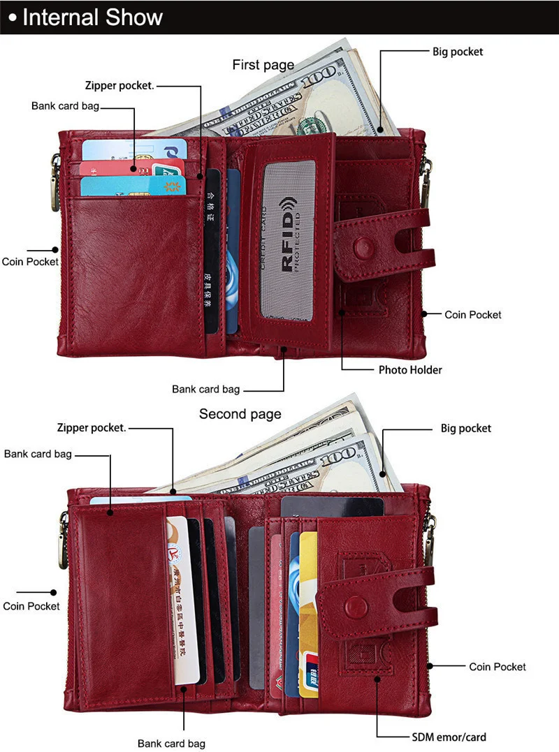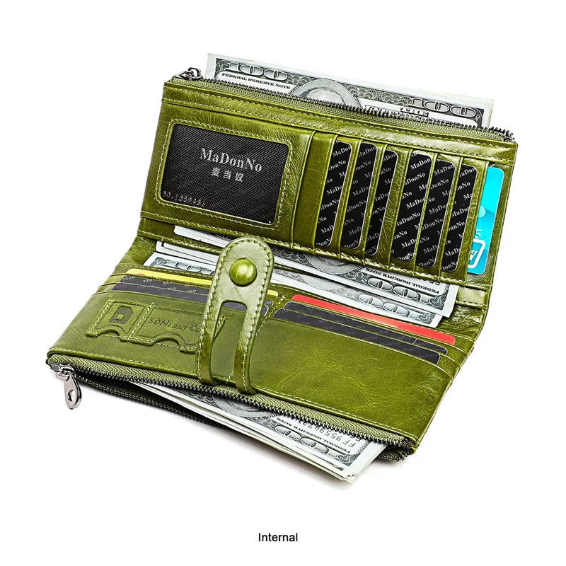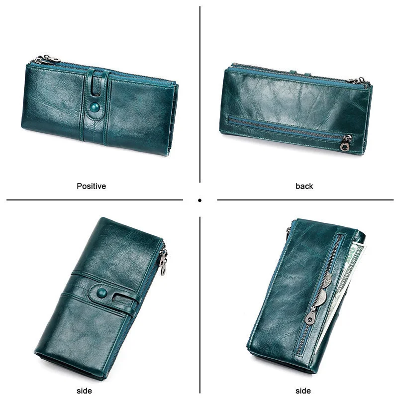 High Quality Cow Leather RFID Wallet Women Hasp Zipper Walets Genuine Leather Female Purse Long Womens Wallets Ladies Clutch