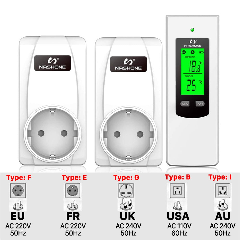 Nashone Thermostat 220v Temperature Controller Thermoregulator Wireless Temperature Sensor Warm Floor Thermostat with Socket EU