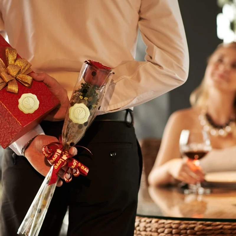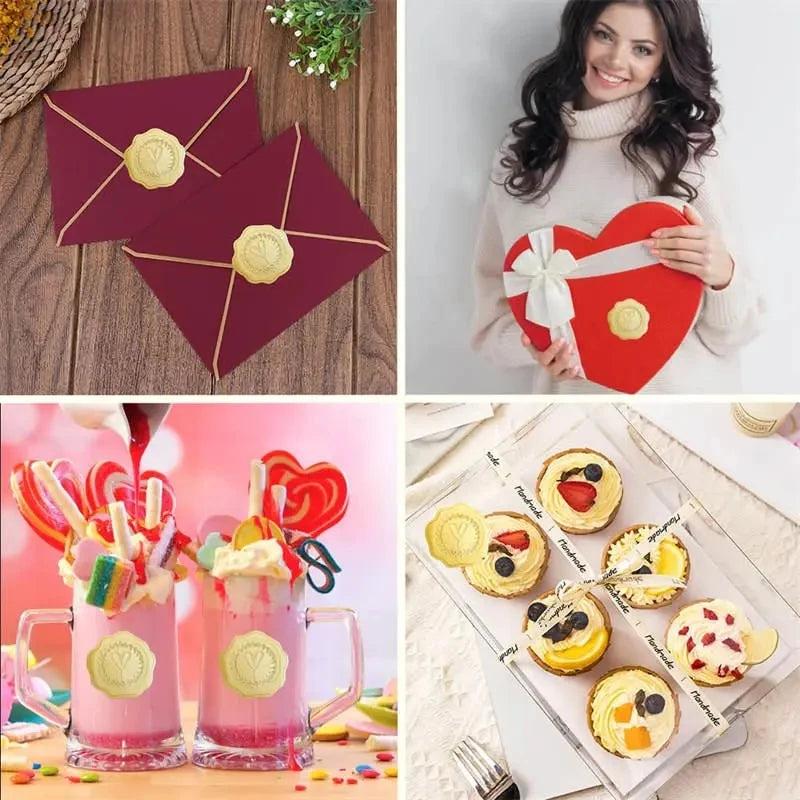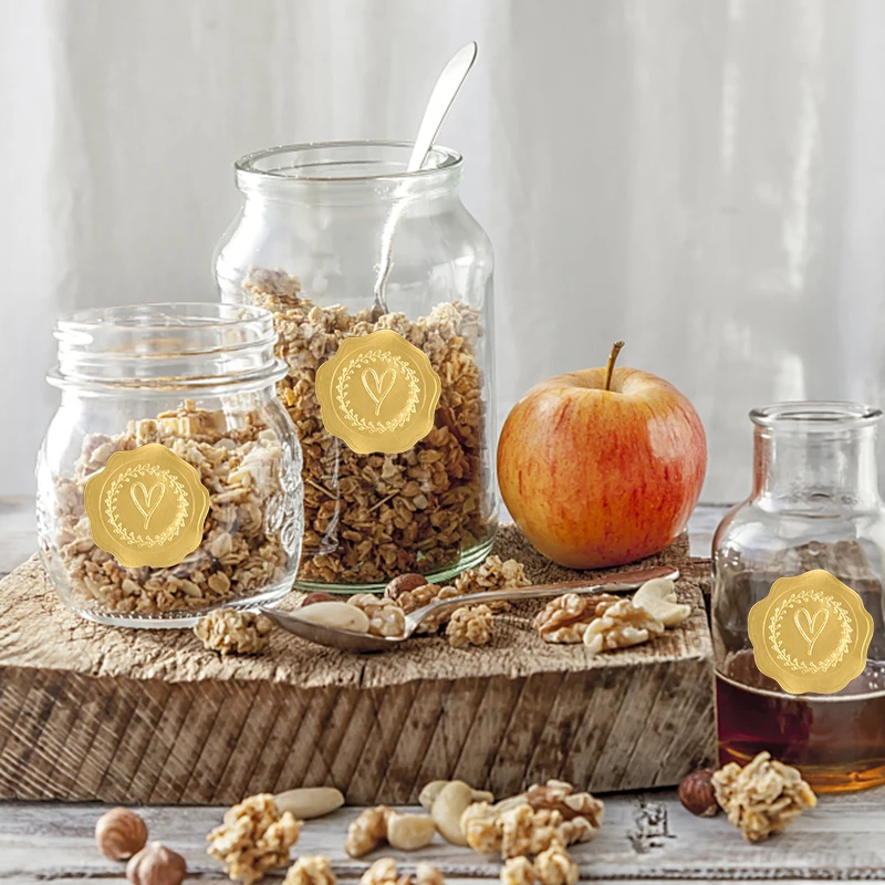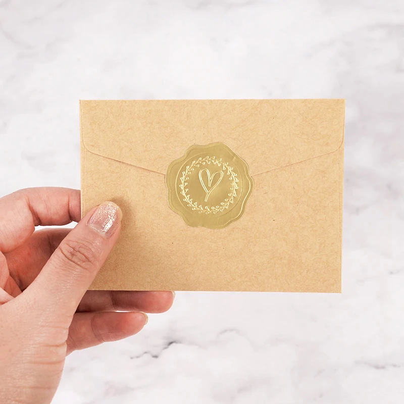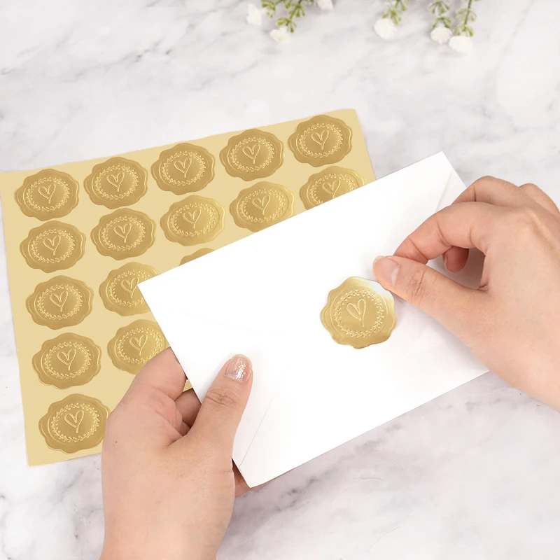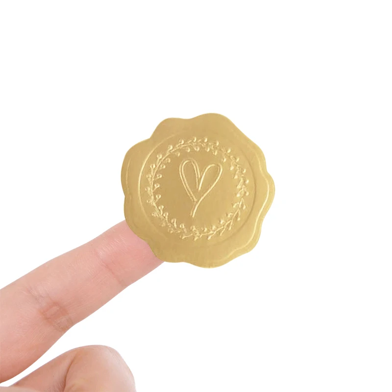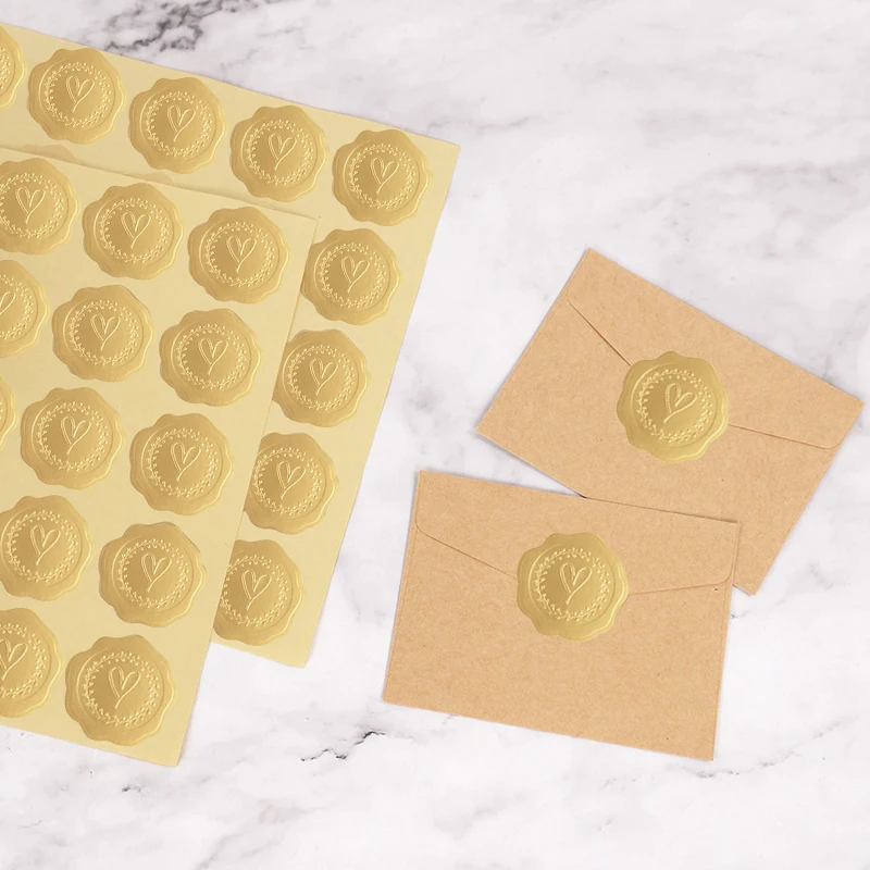 100-200pcs Gold Embossed Heart Stickers Envelope Seal Wax Looking Labels Wedding Party Invitation Card Christmas Gift Decoration
