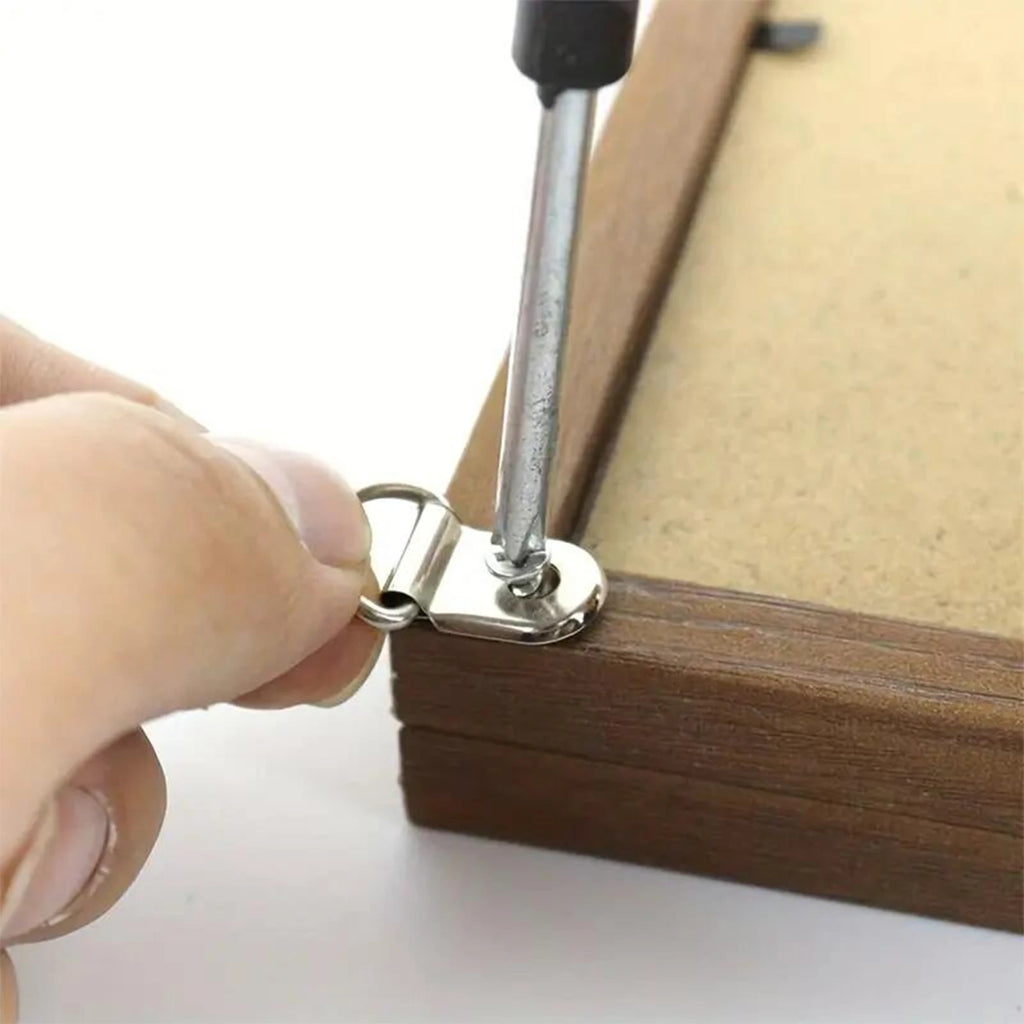 100Pcs Round D Ring Buckle, Photo Wall Hook With Screws, Oil Painting Mirror Picture Frame Hanger