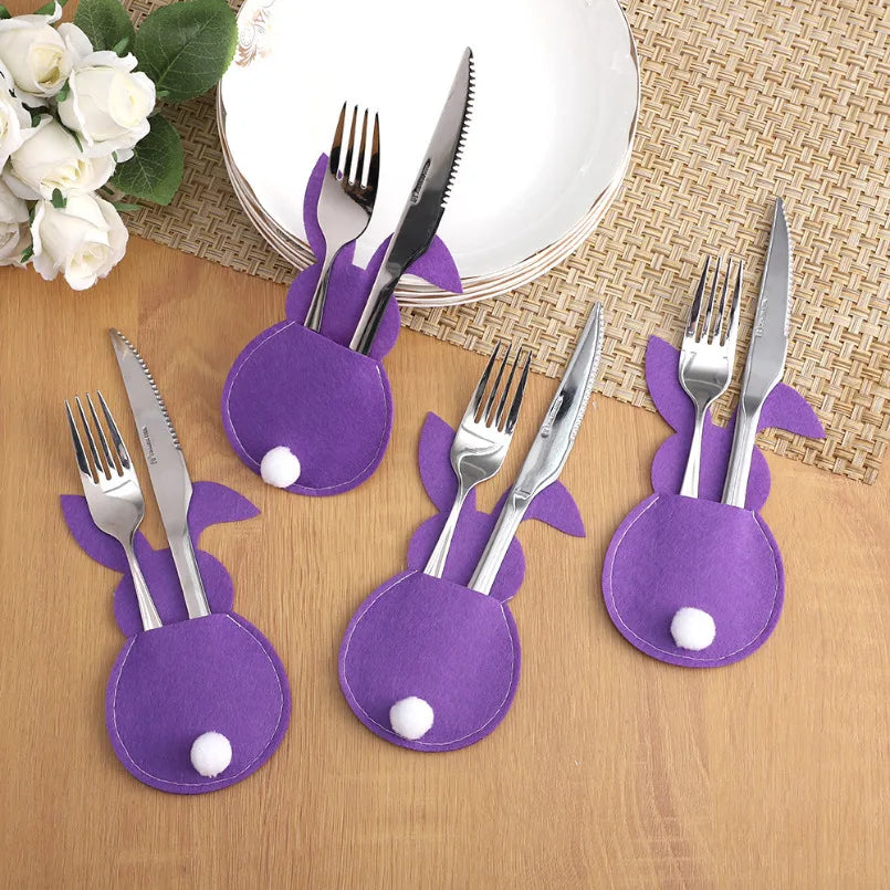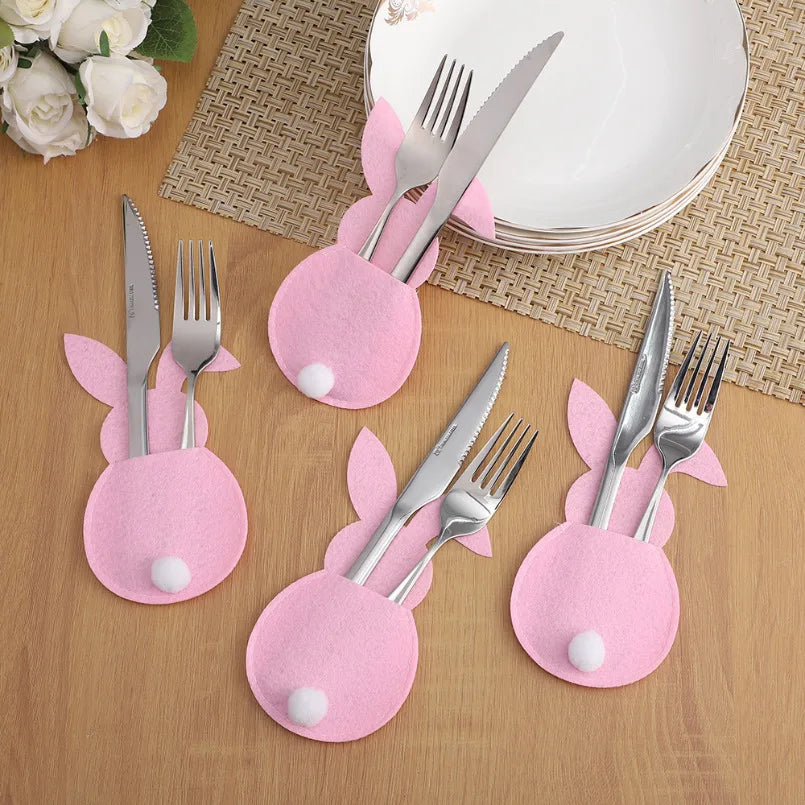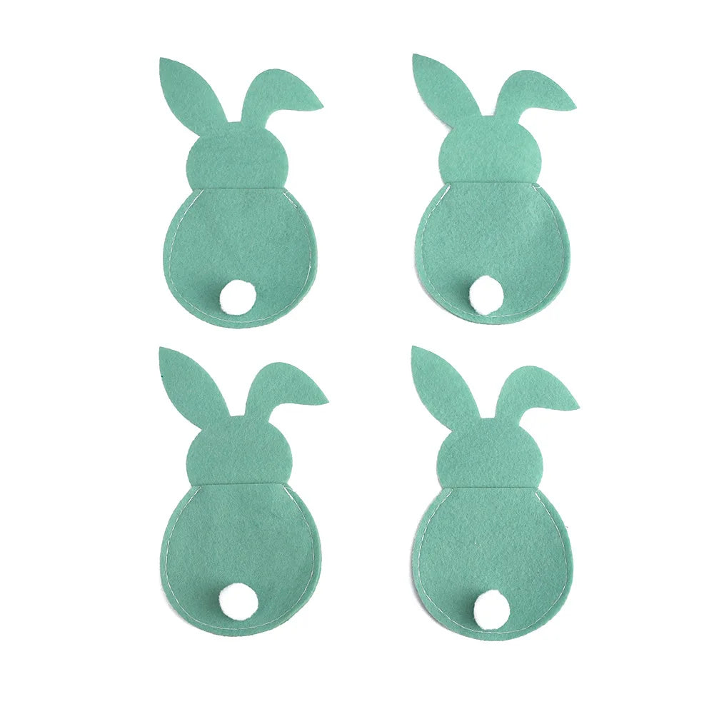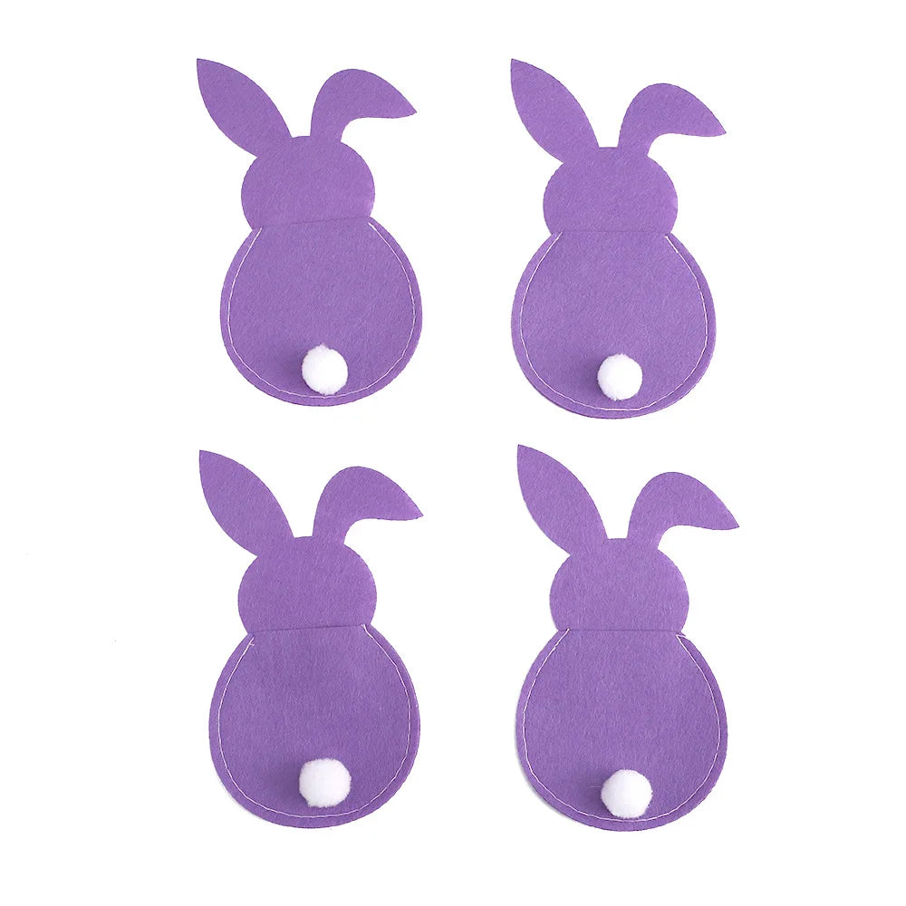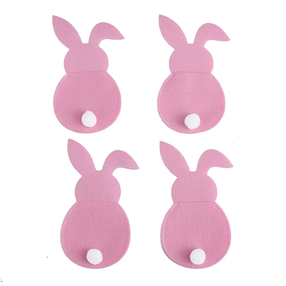 4Pcs Easter Bunny Felt Cutlery Holder Bag Happy Easter Decorations for Home Tableware Accessories Rabbit Cutlery Cover Bag Table