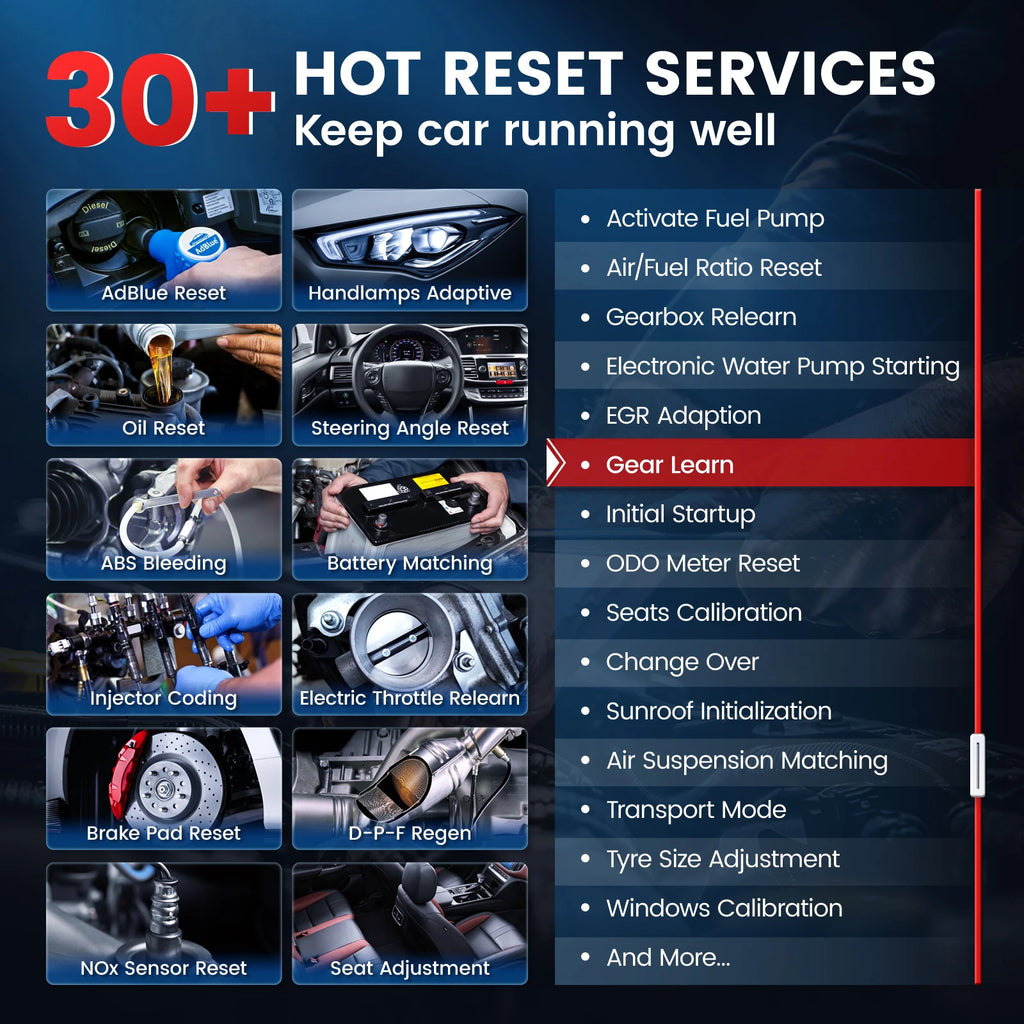 ●Clear Codes: Guide you to figure out the car issues and clear the error codes after maintenance services.