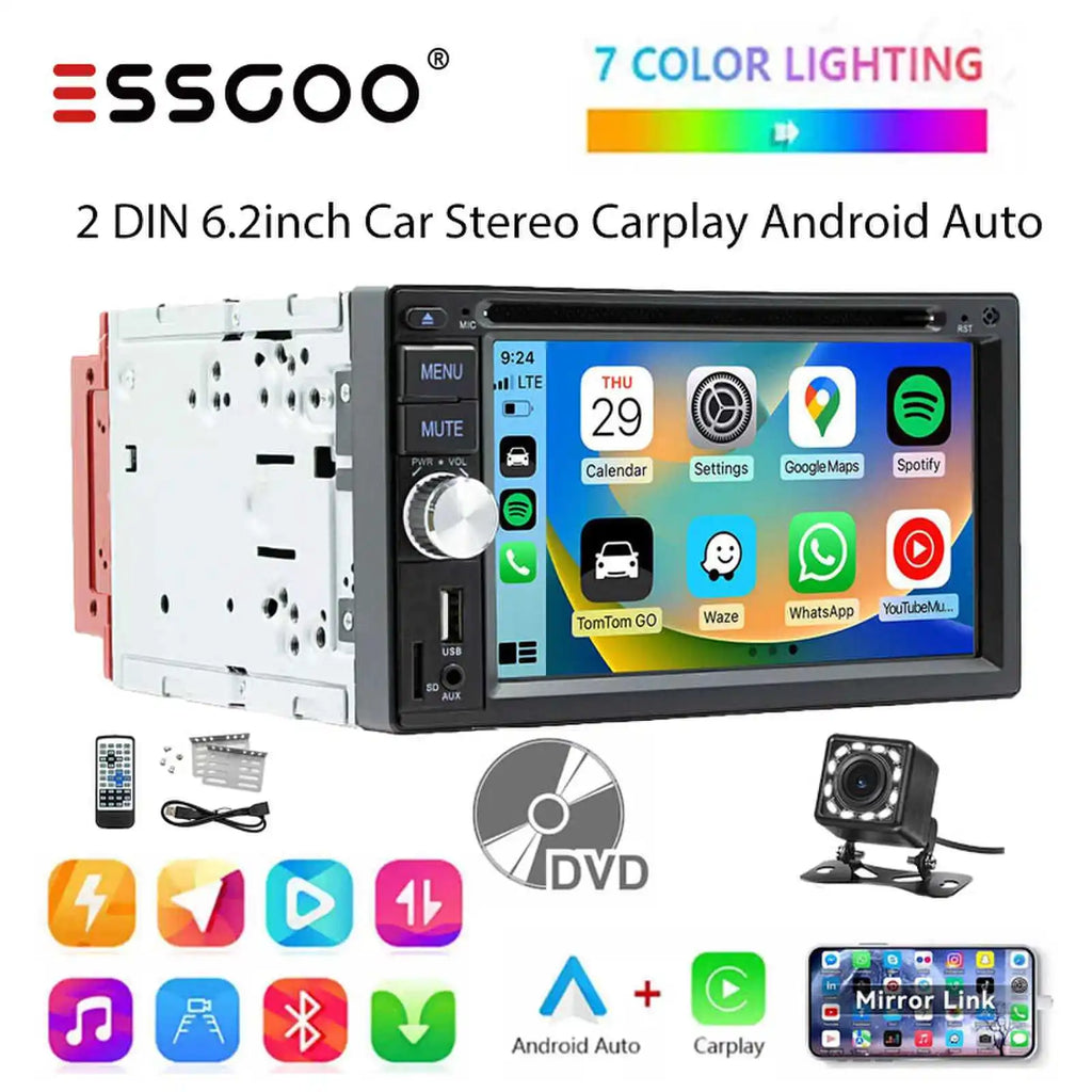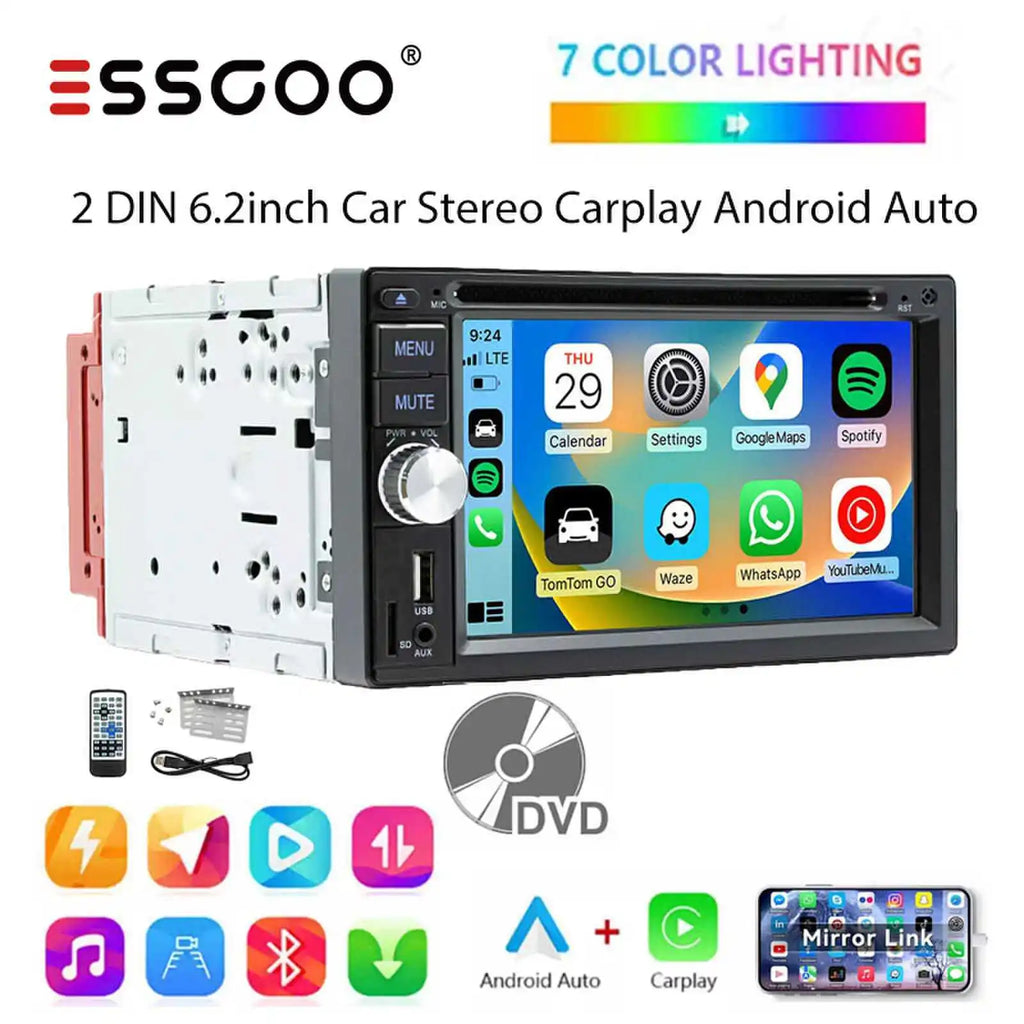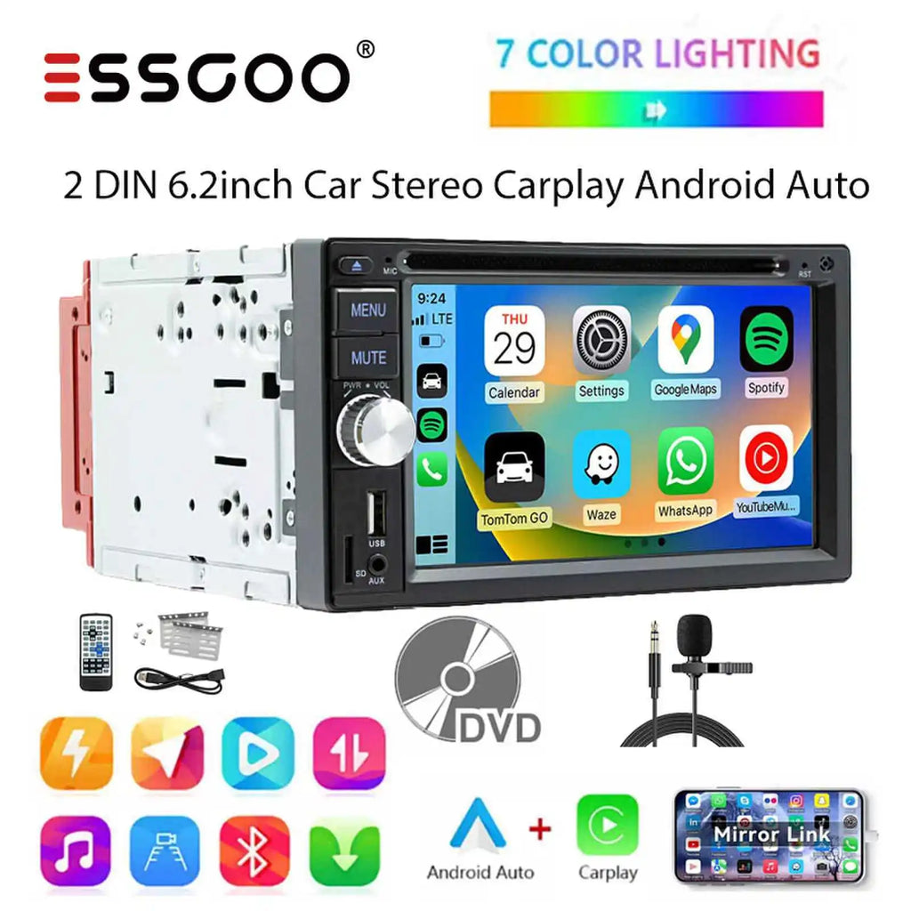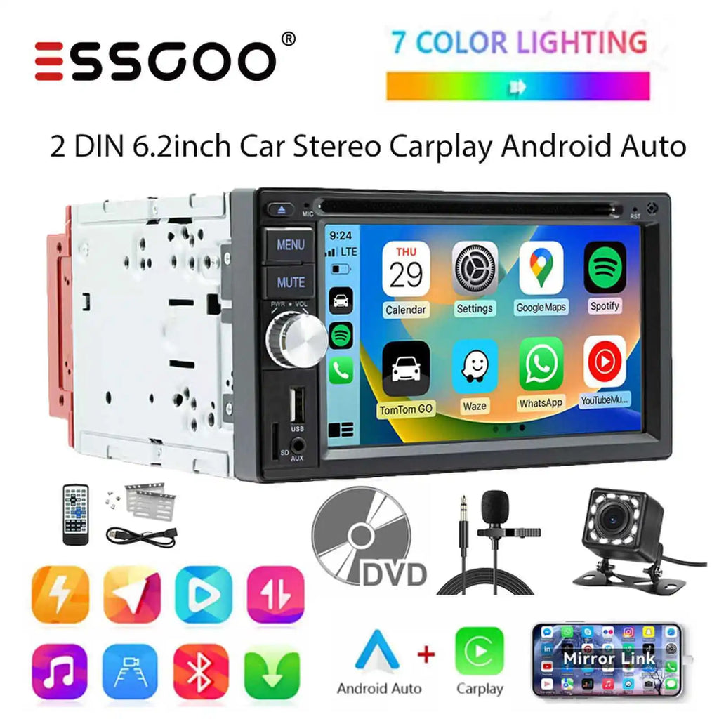 Apple Carplay & Android Auto:6.2 Inch double DIN car stereo, compatible with Carplay and Android Auto. You simply connect your mobile phone with a USB cable, which allows you to receive GPS navigation, calls/messages, play music and FM/AM radio, etc. on this double DIN car stereo with Bluetooth.