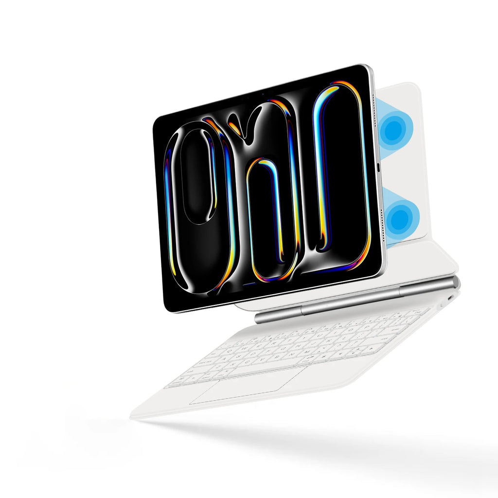 The Magic Keyboard is an amazing companion for iPad Pro and iPad Air. It features a great typing experience, a trackpad that opens up new ways to work with iPadOS, a USB‑C port for pass‑through charging, and front and back protection. The Magic Keyboard features a floating cantilever design, allowing you to attach it magnetically and smoothly adjust it to the perfect viewing angle for you.