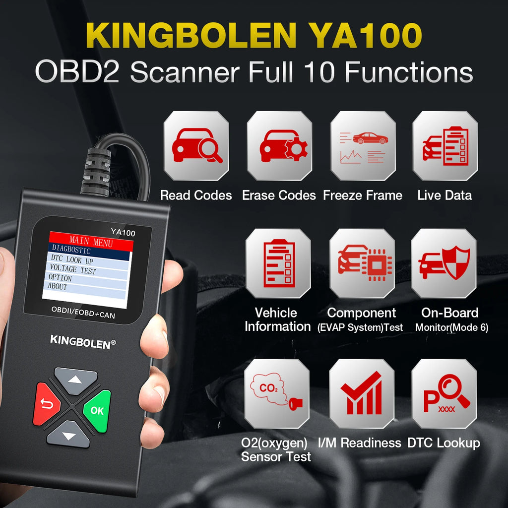 KINGBOLEN YA100 is a new generation OBD2/EOBD diagnostic tool that supports all 10 OBD II test modes for all OBD II compatible vehicles, enabling individual car owners and professional technicians to accurately diagnose the most subtle problems of the car.