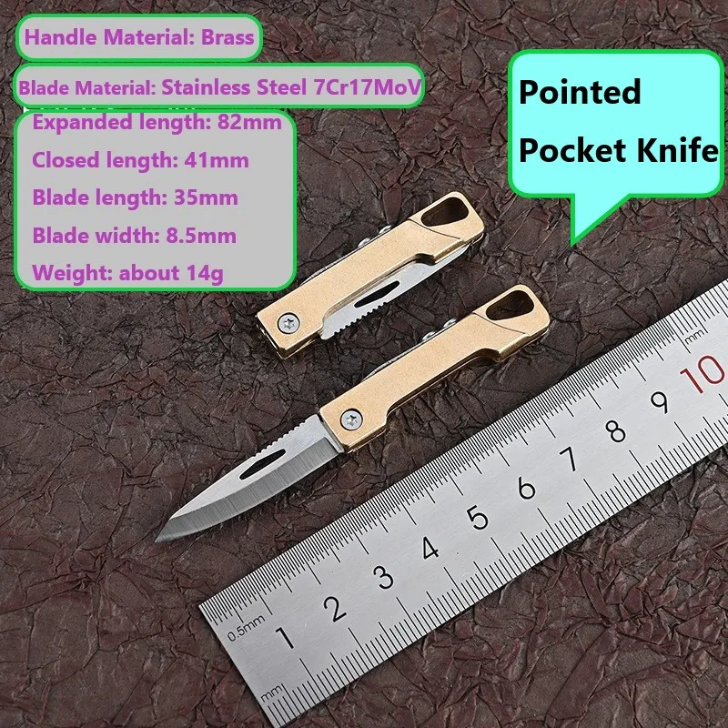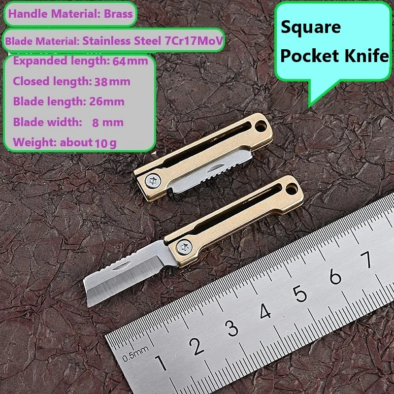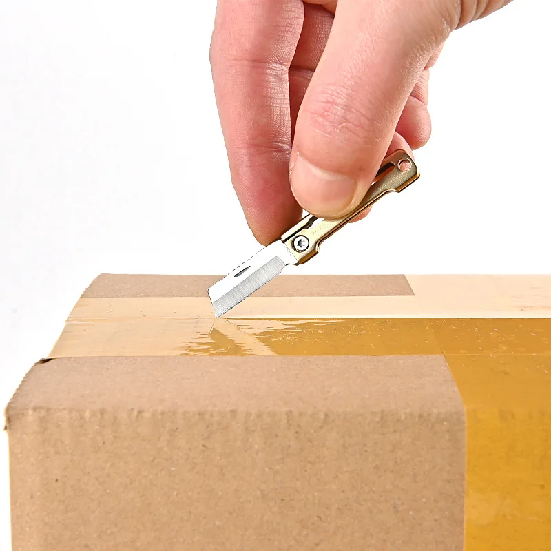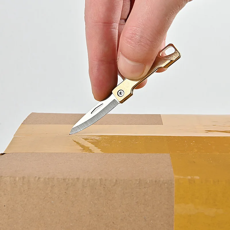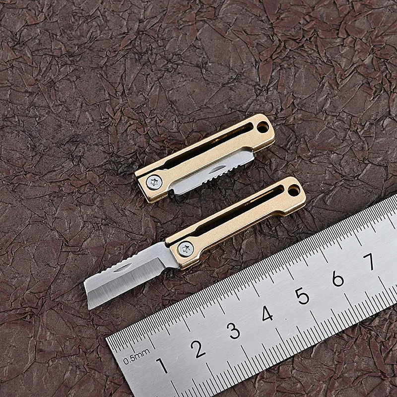 LiTuiLi Mini Brass Folding Knife Keychain Stainless Steel Pocket Knives Small Utility Craft Wrapping Box Paper Envelope Cutter