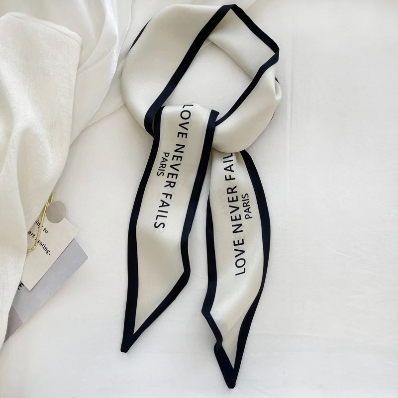 Luna&Dolphin Women Narrow Long Scarf 100x6cm Chic French Gentle Elegant Chiffon Silk Tie Letter Print Bag Ribbon Headband Choker
