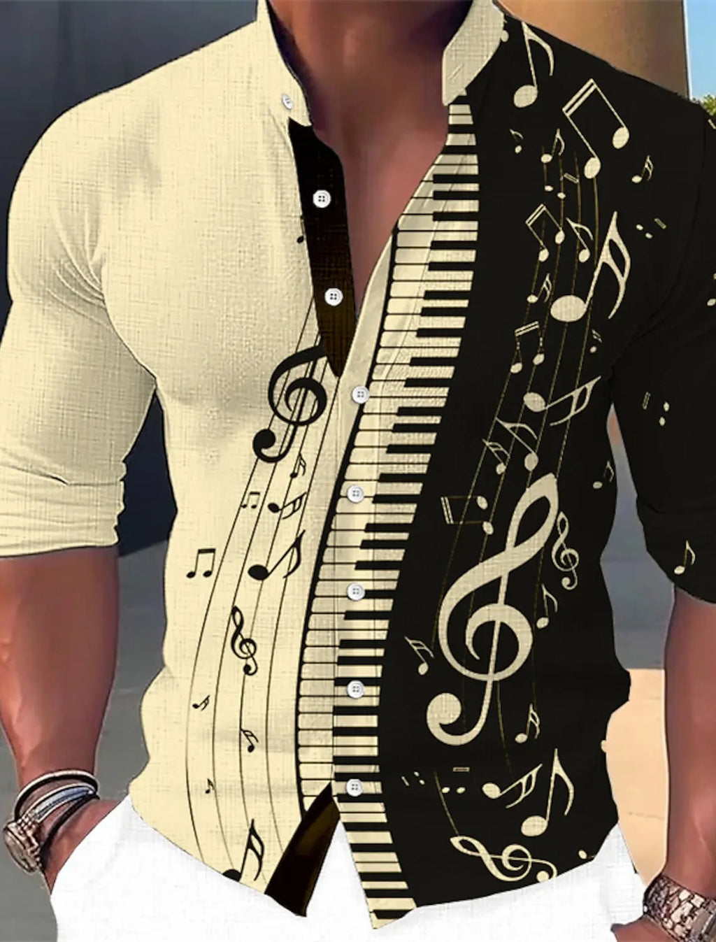 Men's Shirt Graphic Print Music Notes Outdoor Street Long Sleeve Printed Clothing Fashion Streetwear Design Casual