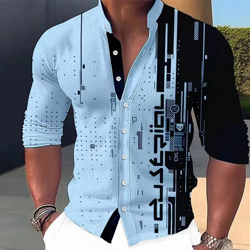 New Four Seasons Fashion Men's Shirt Printed Casual Business Long Sleeve Stand Collar Shirt Men's Extra Large Size xs-5xl