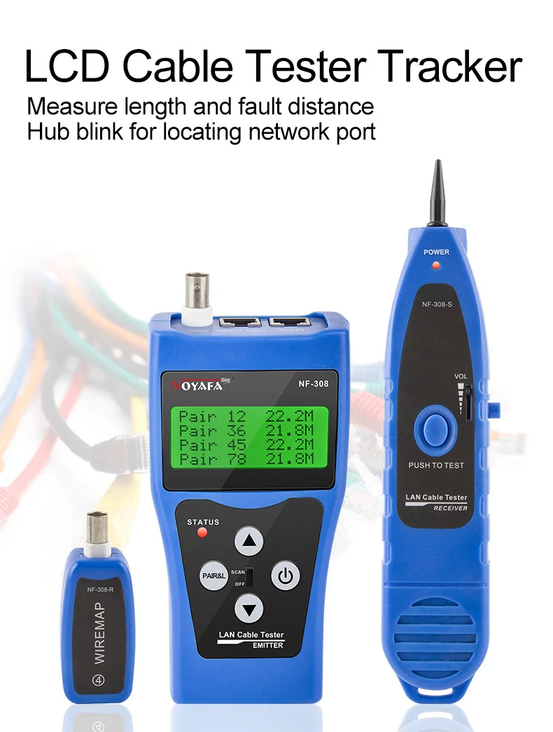 NOYAFA NF-308 Network Cable Tester LAN Measure Length Cables Continuity Test Wire Tracker BNC RJ45 RJ11 Ethernet Cable Tracker