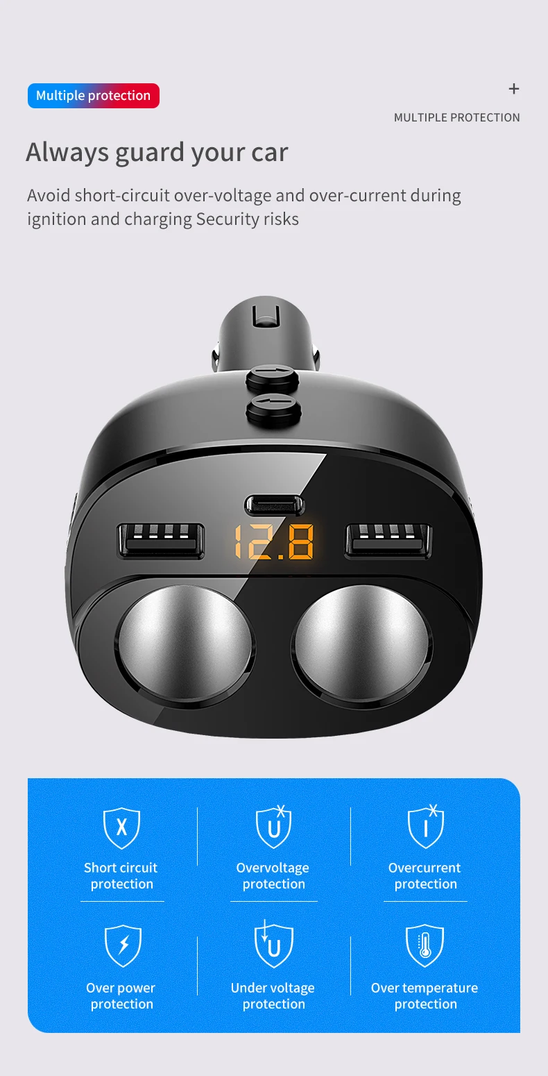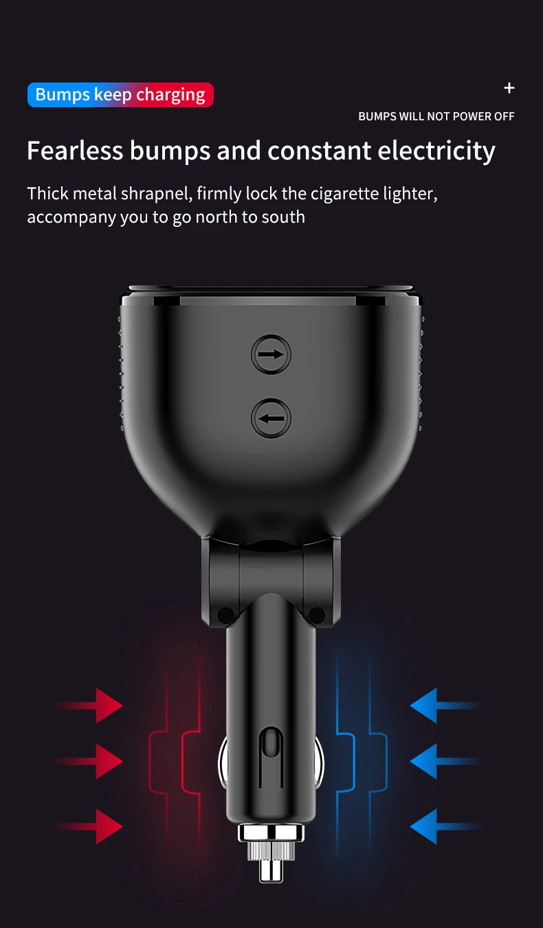 Function: 2 USB ports, 2 cigarette lighter holes, 1 Type C charging