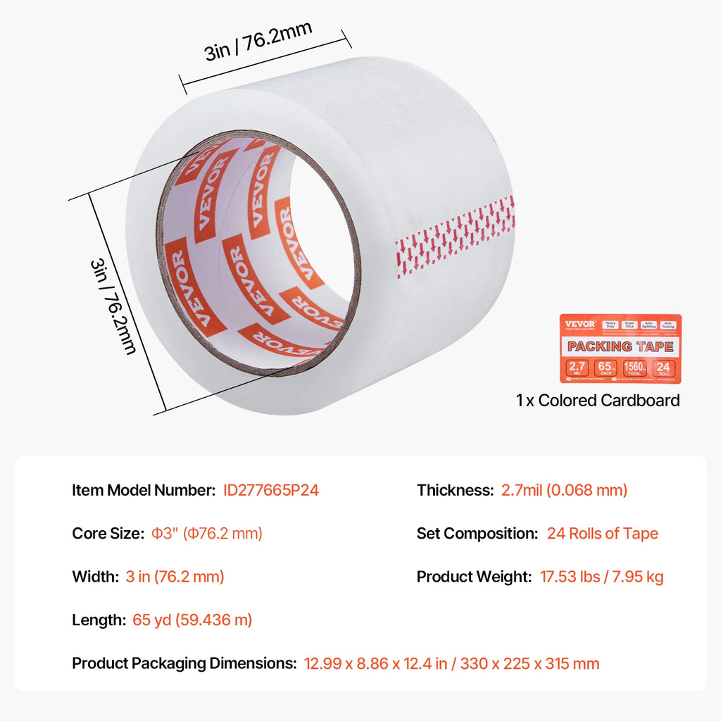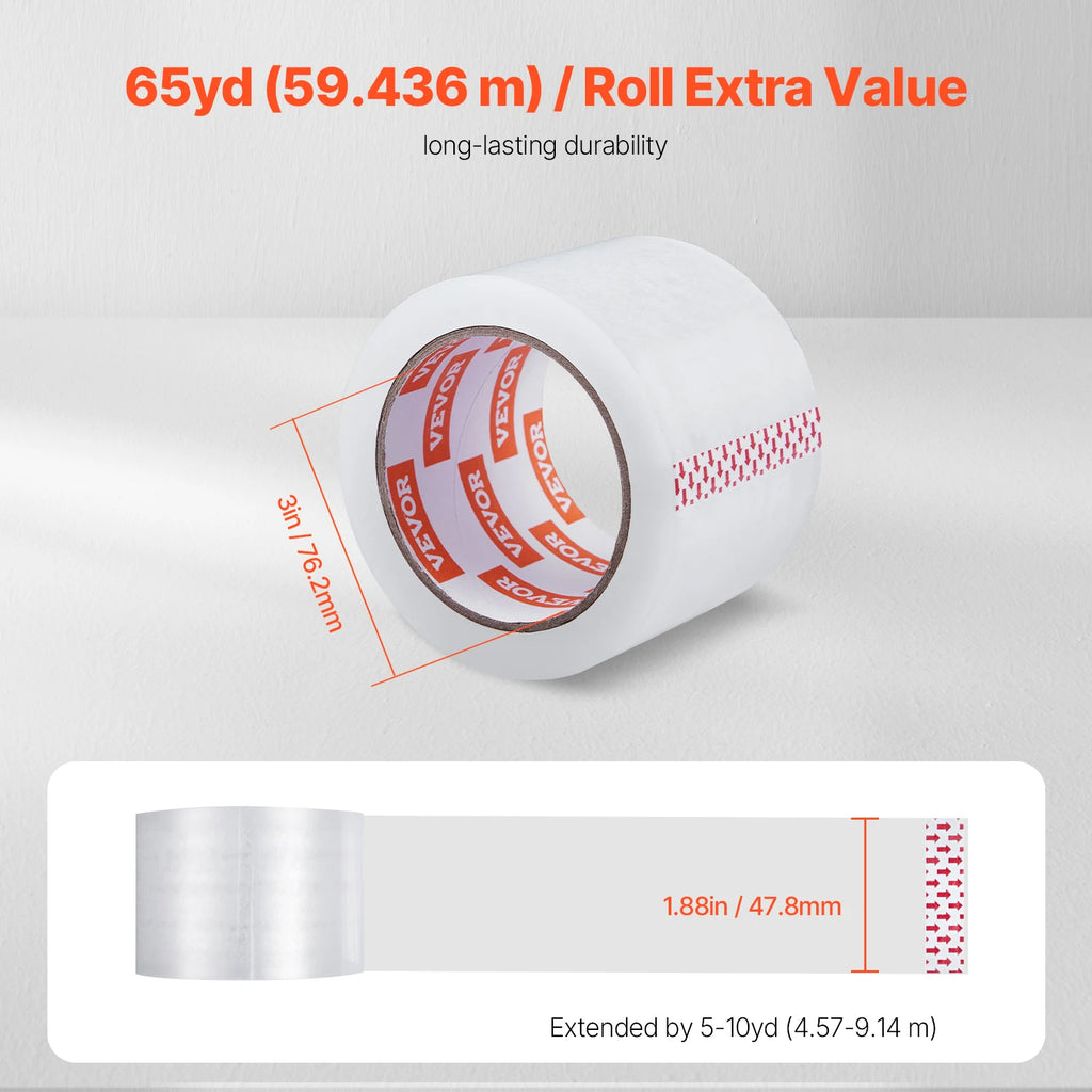 Our cost-effective clear packing tape set includes 6 rolls of 3-inch core tape. Each roll measures 65yd / 59.436m in length—5-10yd / 4.57-9.14m longer than standard options. That means more tape, less frequent replacements, and a more economical solution for all your packing projects.