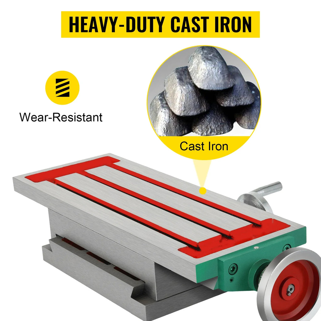 The two-axis workbench surface has three T-slots and provides dual-axis (lateral and cross) positioning via two handwheels for precise adjustments. Perfect for drilling grinding and milling operations.