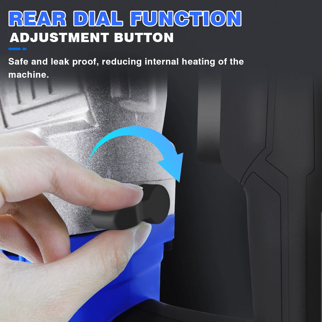 🌟【6 Adjustable Speeds】The rotation speed of the rotary hammer can be adjusted between 0-800 RPM for more precise control, and the maximum impact rate can be 4000BPM. And the upgraded damping technology can effectively reduce the damage during work. With a good spiral heat dissipation system, rotary hammer's motor will not be at high temperature even after a long time working.