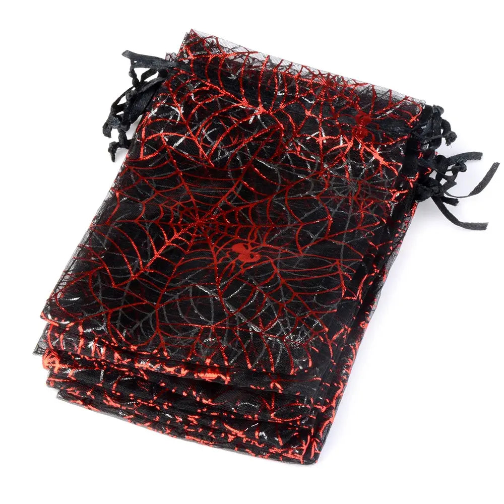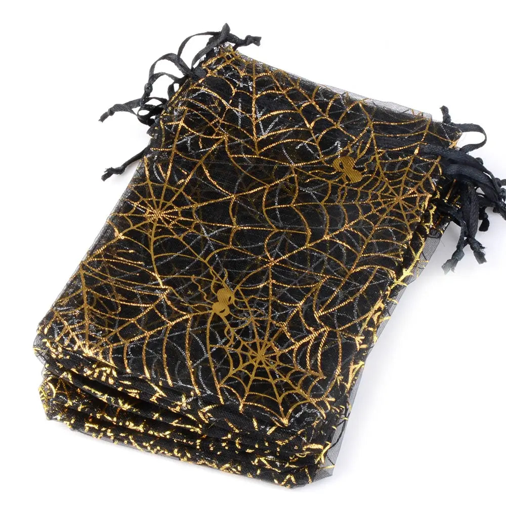 25/50pcs 10x15cm Halloween Organza Gift Bag Drawstring Spider Web Multi Color Printing Packaging Gift High Quality Candy Bag