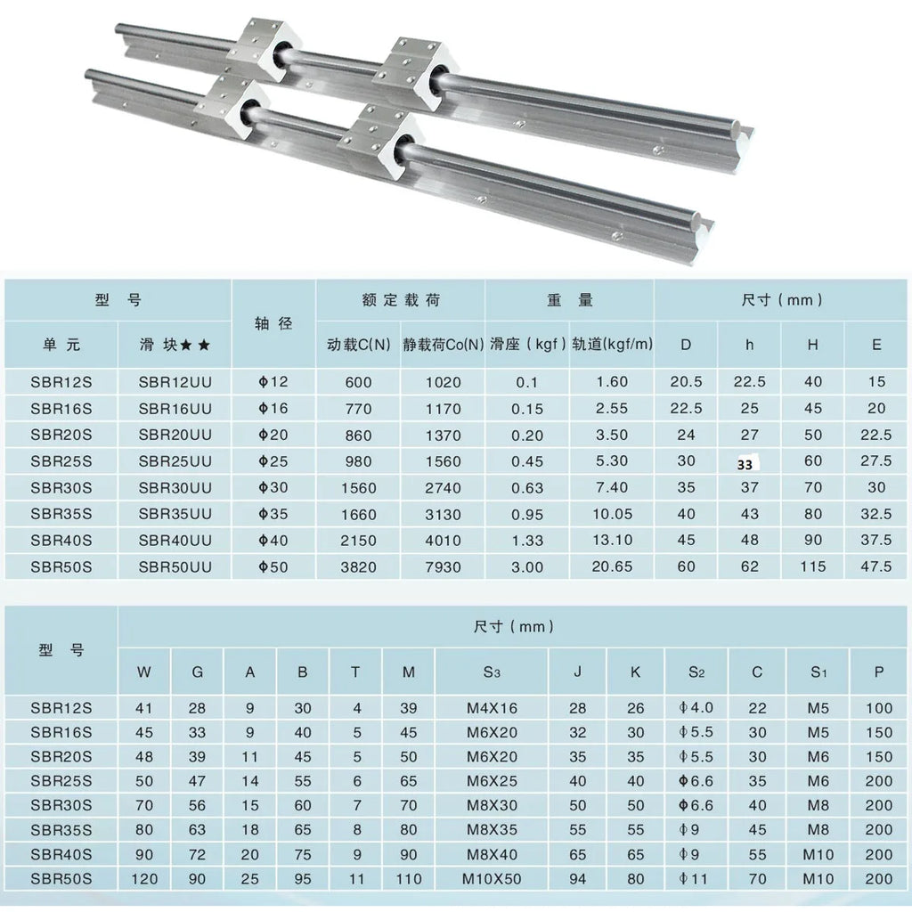 2PCS SBR12/16/20 20mm Linear Guide Rail Length 300-1500mm Fully Supported Linear Rail with 4PCS SBR20UU Linear Bearing Block CNC Part