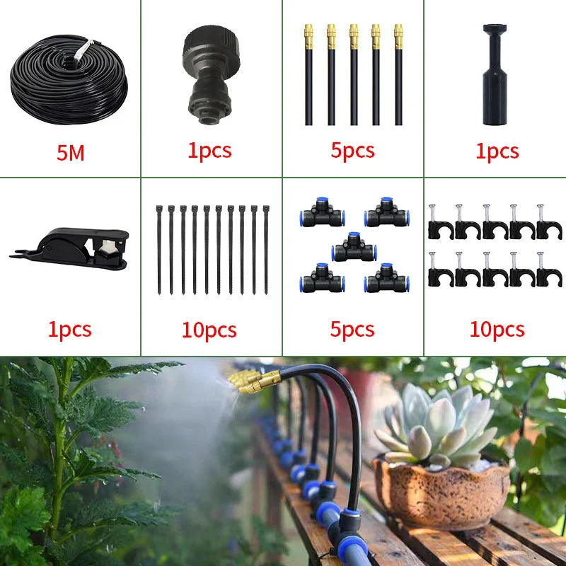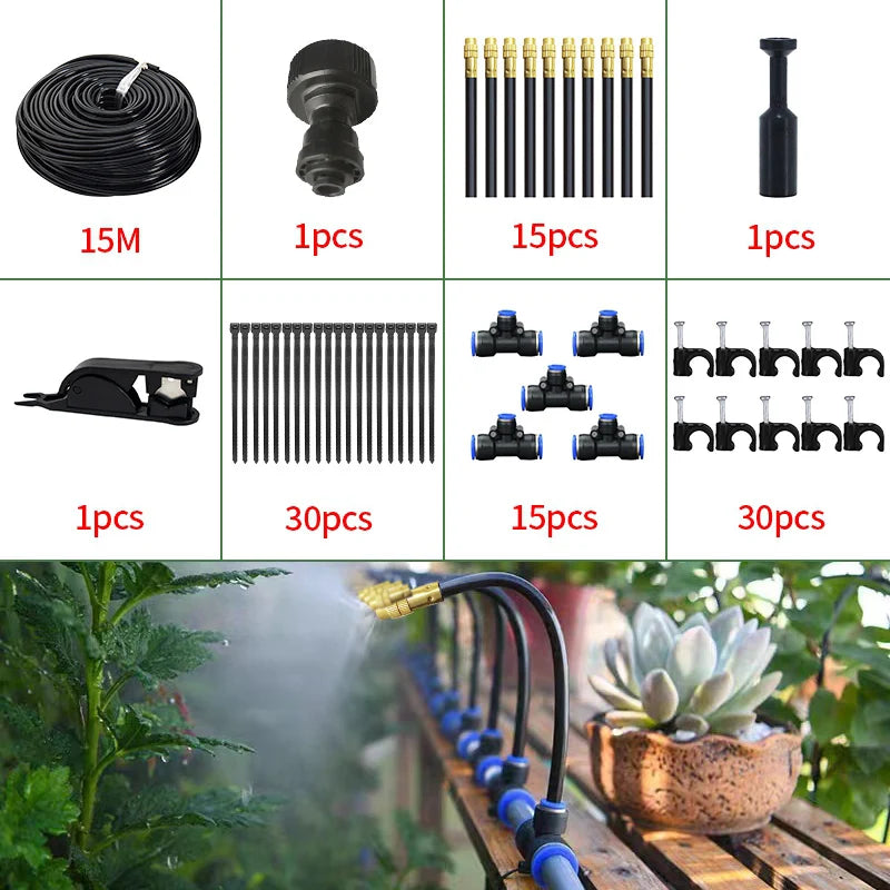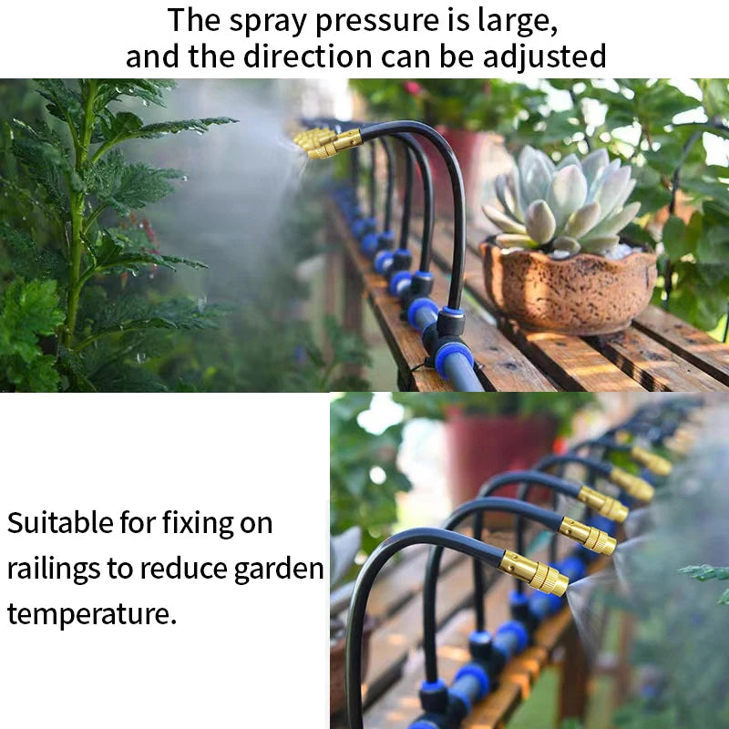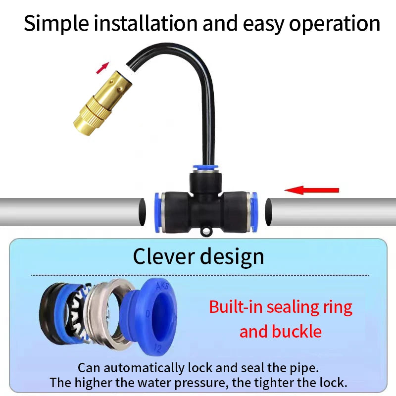 1. Plastic, copper material: Our sprinkler equipment is made of high-quality plastic, nozzle is made of high-quality copper material, will not rust, durable and wear-resistant. 2. Scientific collocation: The combination of accessories and water pipes is very reasonable, and the scientific proportion is matched according to the use habit, which is easy to use. 3. Simple operation: Our water pipes and accessories need to be simple combined installation, simple operation, convenient and fast. 4. Easy to fix: We provide cable ties and fixed accessories, which can fix the water pipe in the fence, fence, climbing net, and will not fall easily. 5. Application scenario: Suitable for family, farm planting fruits, vegetables, flowers, but also suitable for construction sites, gardens, farms, factories for cooling, dust removal.