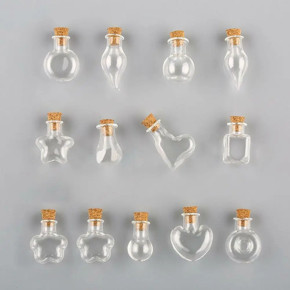Pure handcraft clear glass bottles, each bottle with a cork plug Multifunctional, Roll up your favorite art snippet, photo, wrapping paper, postcard, magazine clipping, laser-printed messages or other paper items - insert into bottle for instant 3-D art. Insert entire small flowers, or dried flower petals, fill with clear epoxy for a permanent real flower pendant, or refill with fresh flowers to match your outfit, or sand from your favorite beach and so on. Good to DIY it as necklace pendant, drift wishing bottles or perfume bottles, also suitable for decoration or send as gift to friends 100%Brand New and High Quality Type:Empty Bottles Color:Transparent Material:Glass Shape\pattern:Geometric Style:12 Styles for you choose Function:Wishing Bottles,Perfume Bottles, Necklace Pendant,Storage Bottles,Sample Bottles Size:W*L Star:22*26mm Obliquely Heart:20*27mm Chilli Pepper:16*32mm Oval Bottle:18*20mm Water Droplets:15*25mm Square:15*25mm Single-pointed:15*33mm Plum Blossom:20*25mm Flat-bottomed Spherical:18*22mm Hearts:22*27mm Ball:15*22mm XO:18*26mm Package Include:5 x Empty Bottles with Wood Stopper Note: 1.Due to the light and monitors effect, colors may have lightly difference. 2.Please allow 1-2mm size errors due to manual measurement. Thank you for your understand! 3.1mm=0.039''