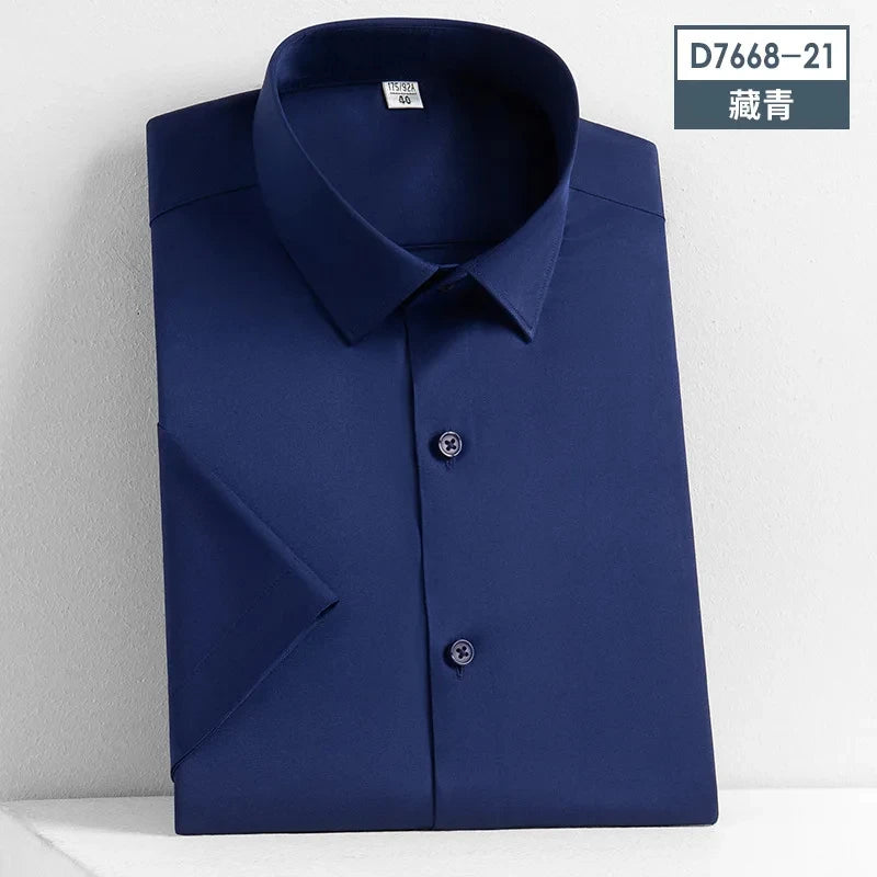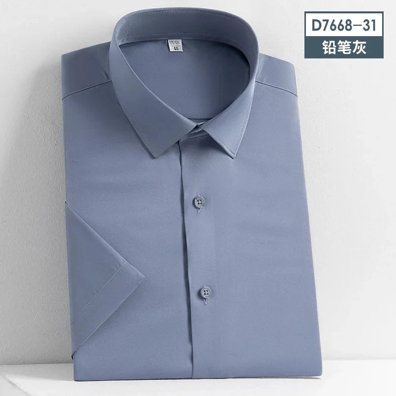 5XL Silk Smooth Formal Dress Quality Social Summer Short Sleeve Men's Shirt Business Slim Fit ice silk Casual White Non iron 4XL