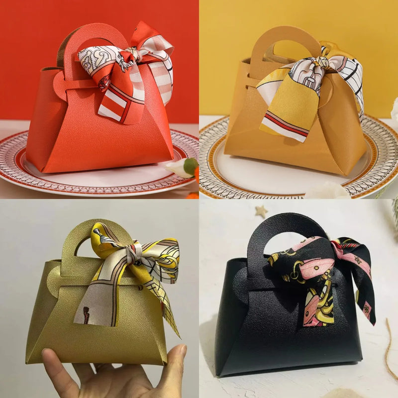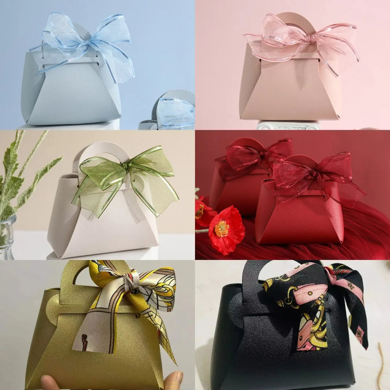60PCS Leather Gift Bags Wedding Favour Bag for Guest Mini Handbag with Ribbon Candy Packaging Box Eid Distributions Party Decor
