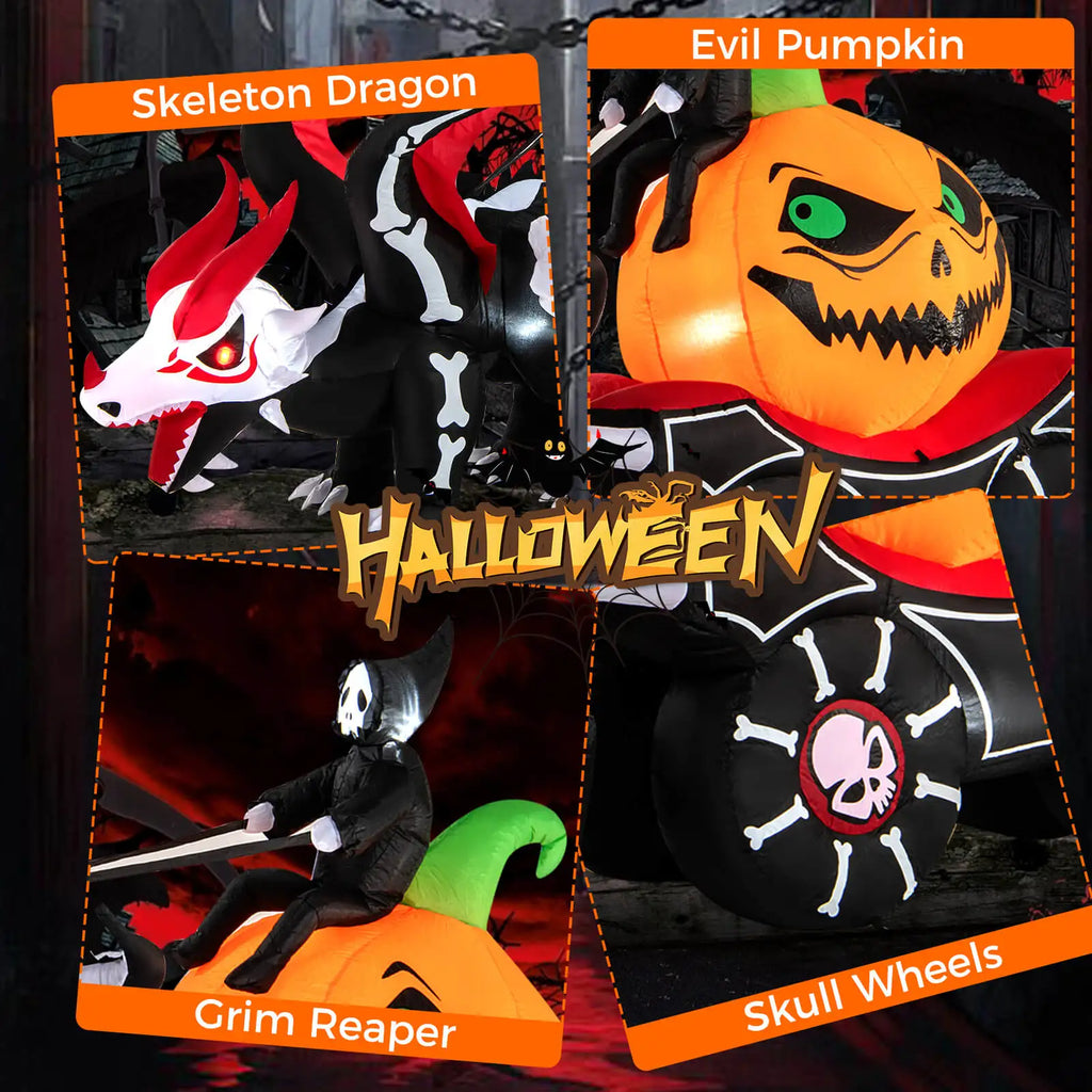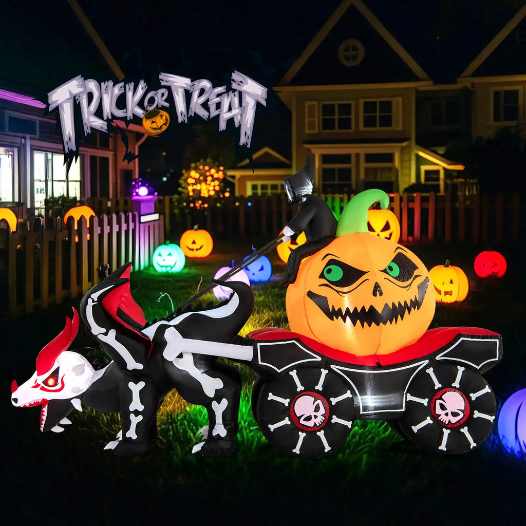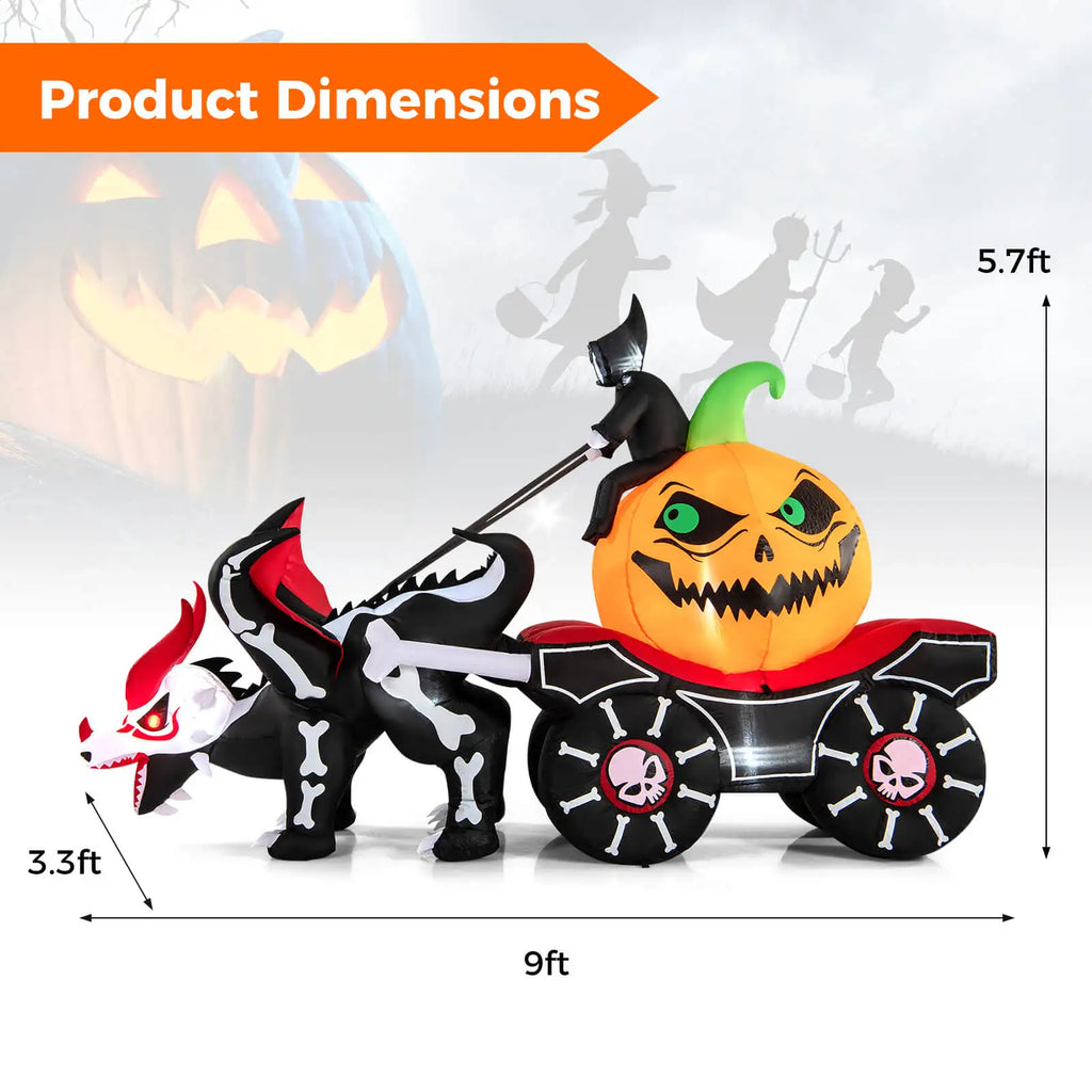 9 FT Long Halloween Inflatable Decoration Grim Reaper Driving Pumpkin Carriage