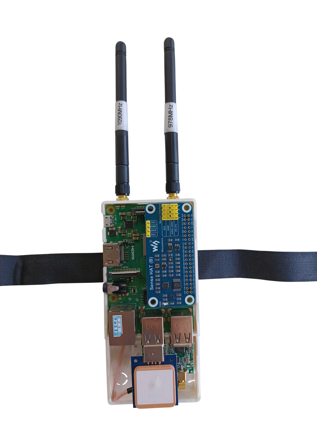 Comes with long antennas +5db gain 1090mhz and 978mhz tuned