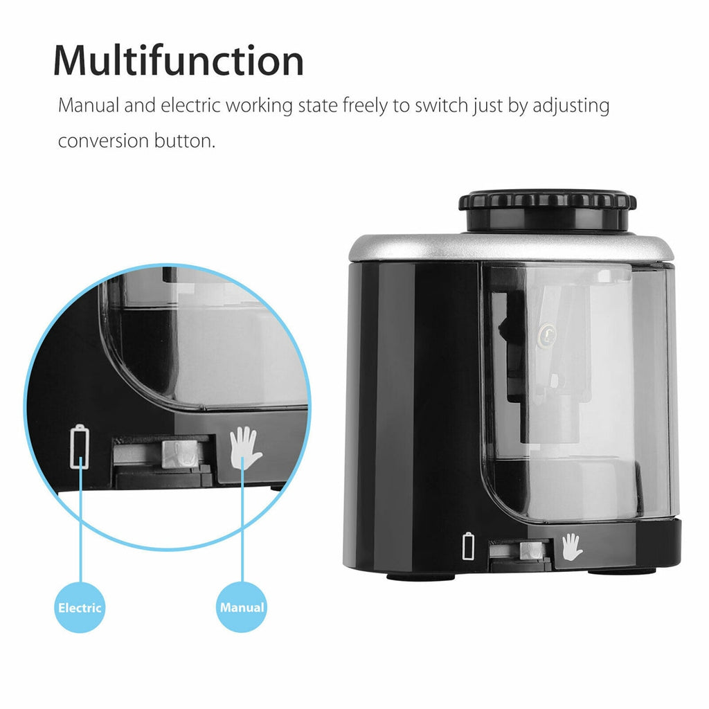 - MULTIFUNCTION: Manual and electric working state freely to switch just by adjusting conversion button, ensure the sharpener can still work if batteries cannot supply power.
