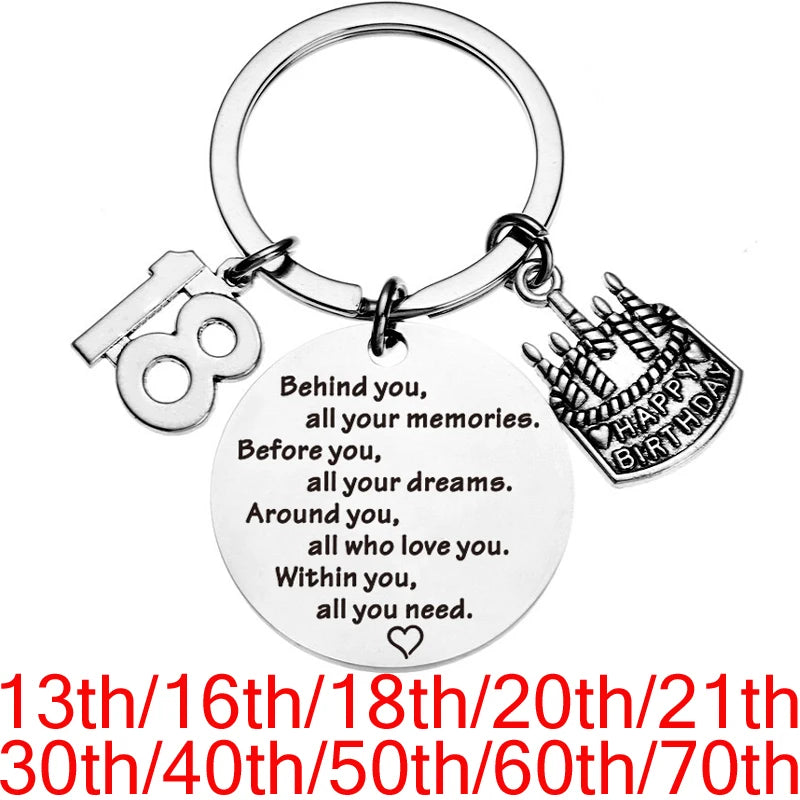 Happy Birthday Gifts Keychain Inspirational Gifts Jewelry for Women Men 13th 16th 18th 20th 21th 30th 40th 50th 60th 70th