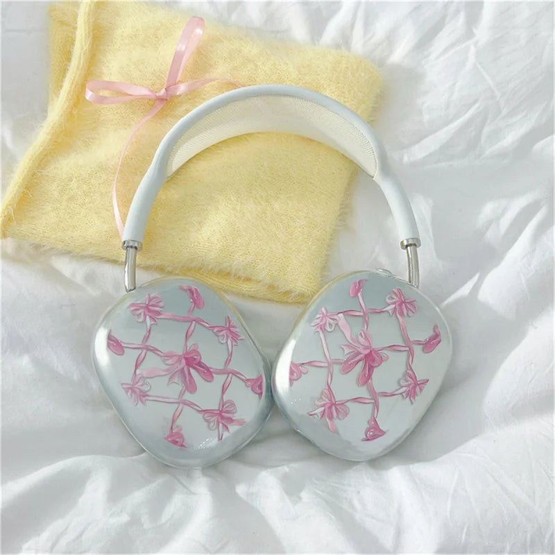 Korea Cute Bowknot Flower For Airpods Max Earphone Case Clear Silicone Headphone For Airpods Max Leopard Print Protective Cover