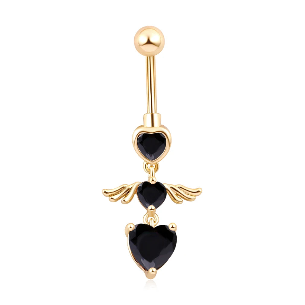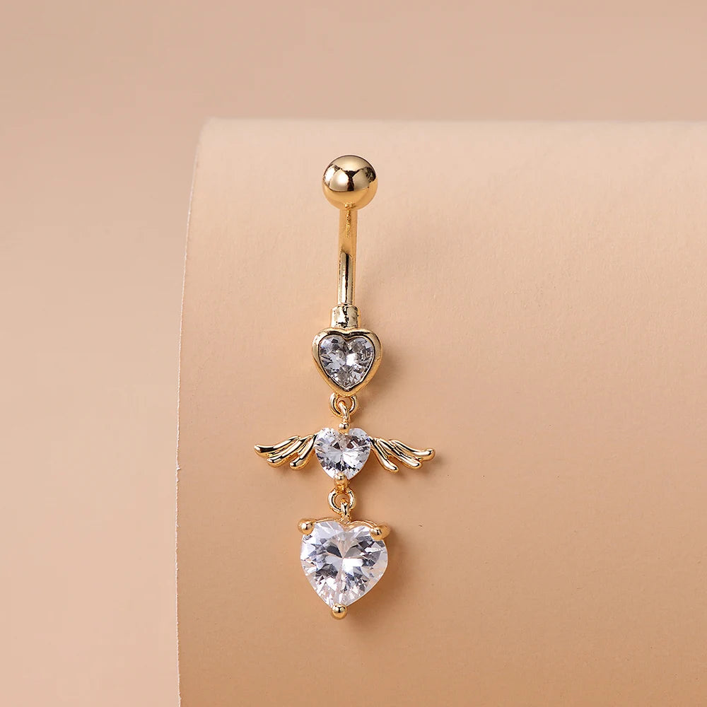 KUNIU 1pc Cute Fashion Angel Wings Heart Shape Zircon Belly Ring Women's Fit Piercing Body Jewelry